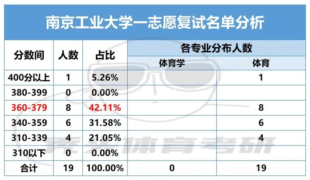 26体育考研分数分析|19人!南京工业大学体育学院一志愿复试名单分析