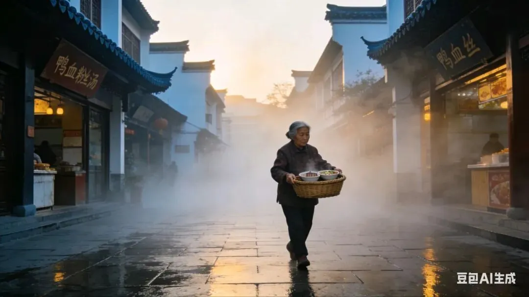 清晨的秦淮河还浸在薄雾里,夫子庙的街巷渐渐醒了。阿婆端着竹篮走过,篮里的鸭血粉丝汤还冒着热气,汤面上浮着翠绿的香菜,鲜味儿顺着风飘了半条街。路过颐和路,法国梧桐的枝叶在头顶织成绿伞,阳光透过缝隙洒下来,在青石板路上投下细碎的光斑。路边的老槐树旁,几位老人摆着象棋,棋子落在石桌上的脆响,和着蝉鸣,成了南京最动听的晨曲。