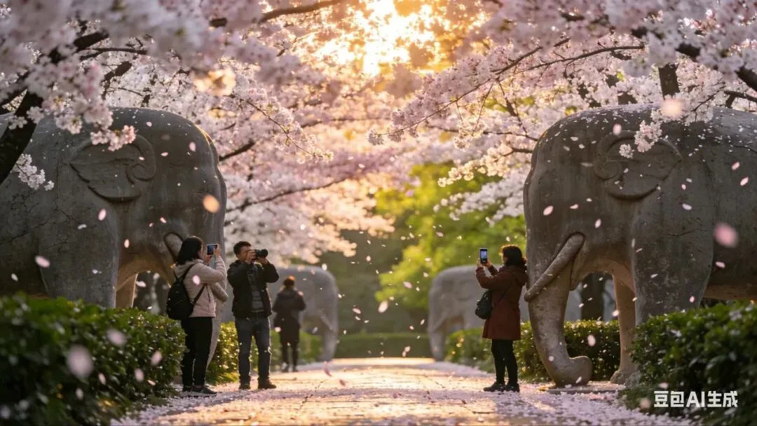 中山陵的台阶望不到头,拾级而上,风里裹着松针的清香。站在顶端俯瞰整座城市,明城墙的青砖裹着岁月的厚重,新起的楼宇透着鲜活的朝气,古老与新生在此处相拥,竟毫无违和。明孝陵的石象路,六百年的石象静静伫立,它们见过六朝的烟雨,见过明清的繁华,也见过如今南京人的寻常日子。春日里,石象路的樱花如云似霞,游人驻足拍照,笑声落在花瓣上,惊起一阵花雨。
