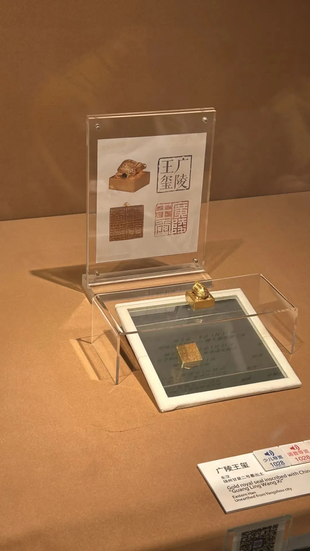 一是东汉“广陵王玺”金印,是东汉光武帝刘秀第九子刘荆所用之印,纯金铸成,迄今为止发现的唯一一枚汉代诸侯王金印。