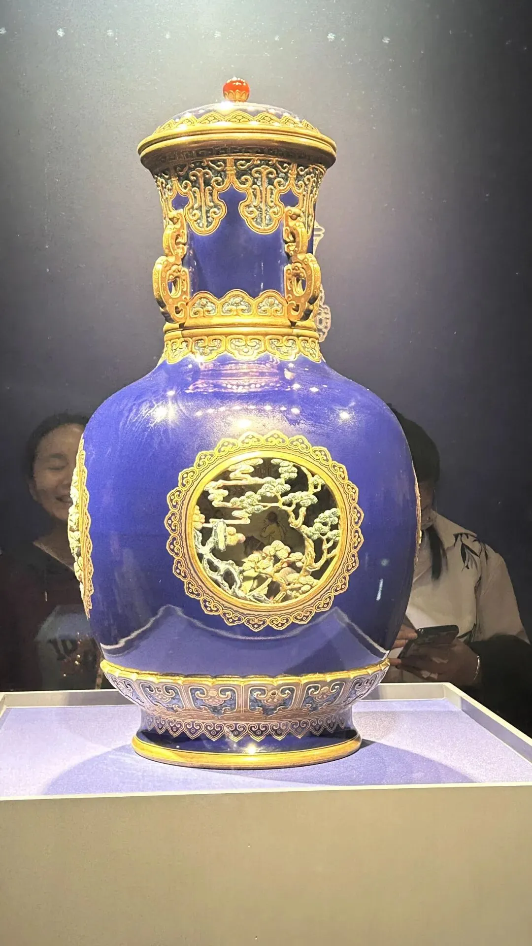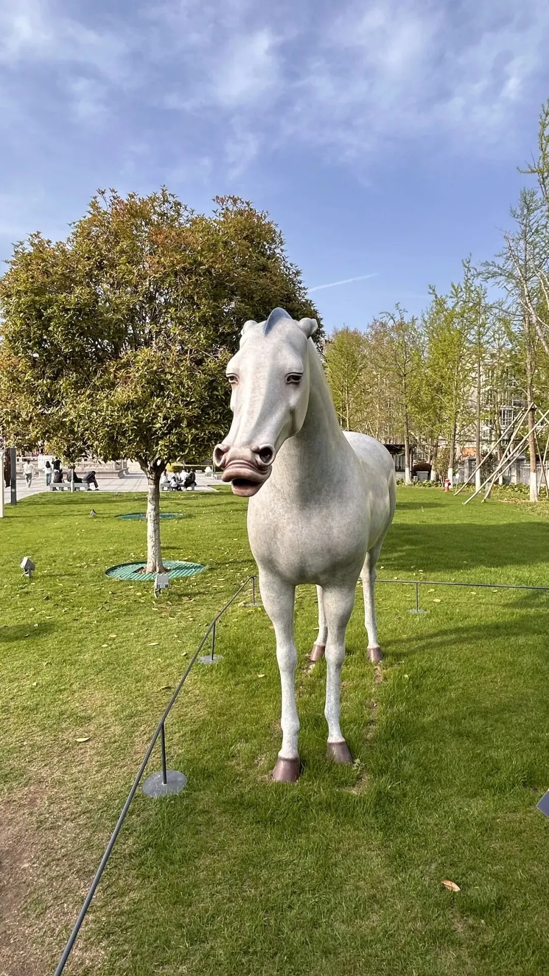 六是清乾隆“行围图”转旋盖瓶,镇院之宝,一经展出,所有瓷器黯然失色。很难想象,在小小的瓷瓶上,工匠们把珐琅、牙雕、绘画、青铜、玉石镶嵌等多种工艺“拼装”成一台微型机械。 瓶内所藏《乾隆行围图》,描绘的是乾隆帝早年东巡木兰围场、弯弓行猎的盛景。粉彩人物与镂空山景层层叠映,旋转之间,猎骑呼啸、彩云翻涌,仿佛有人低声复述一段皇家叙事诗。 文字难以穷尽其巧,唯有亲临其境,方知何为“大成至巧”。一件瓷器,一段精湛技艺凝固的历史;泥与火的艺术,巧夺天工,韵承古今。 出来,又去民国馆和数字馆溜了一圈。妈妈实在走不动了,我才恋恋不舍离开。 走之前,看见站在草坪上的铸铜彩绘马“逐梦记”,以一种生命承载自然的形式展现。正如作者王瑞琳所说:“人类的伟大在于能发现自身的渺小,顺应自然是我的生活态度。”