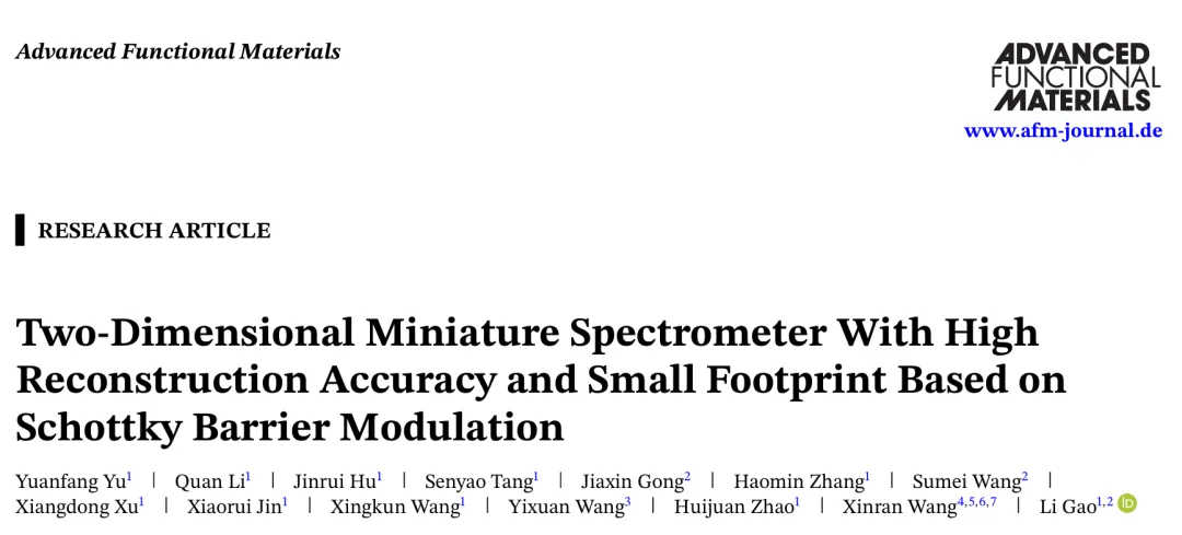 Y.Yu, Q.Li, J.Hu, et al. “Two-Dimensional Miniature Spectrometer With High Reconstruction Accuracy and Small Footprint Based on Schottky Barrier Modulation.” Advanced Functional Materials (2026): e00074.