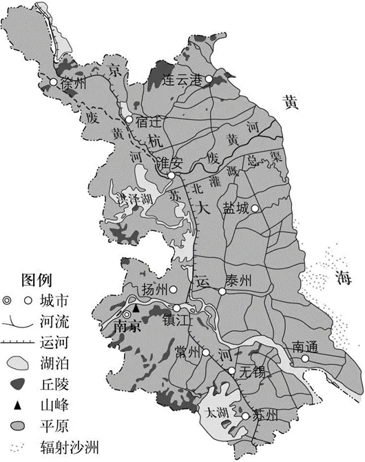 【2022江苏卷】材料一:江苏地势低平,河湖密布,以平原为主,可以概括为“一山二水七分田”。广东除珠江三角洲外,其余地区以山地和丘陵为主,可以概括为“七山一水二分田”。下图为“江苏地形图”。