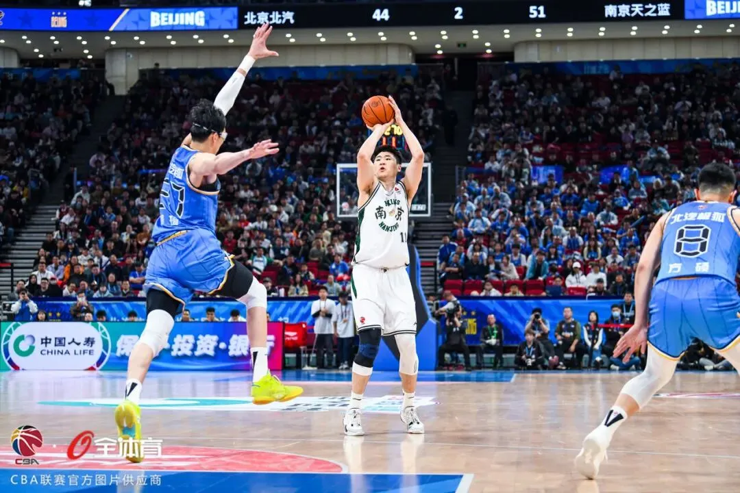 进入次节,郭昊文背身单打杰曼打成2+1,麦基顺下上篮,祝铭震追身三分。杰曼两罚不中,郭昊文、帕克接连走上罚球线。雷蒙接应三分,麦基跳步上篮,赵柏清二次进攻得手。麦基内线强攻,郭昊文追身封盖翟晓川上篮,随后点起防守禁区再下两分。马内克抢断罚球取分,麦基、帕克攻框得手。郭昊文错位单打范子铭,连续晃动突破打成2+1。帕克见缝插针助攻马内克切入双手灌篮,打停对手。帕克中路突破再分柏清,后者三分手起刀落。陈盈骏中距离撤步跳投,马内克追身三分命中,贝利底角三分开火,帕克大跨步挑篮,陈盈骏弧顶远射,球队暂停调整。贝利中距离跳投颠入篮筐,马内克三分无视防守再中一记。郭昊文慢三步对抗抛投压哨命中,半场战罢,北京北汽46-56南京天之蓝。
