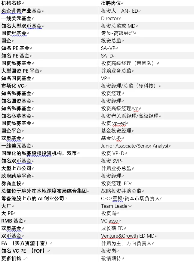 2.工作经验:2年以上股权投资相关工作经验,专注细分赛道,有头部投资机构或产业资本任职经历者优先。