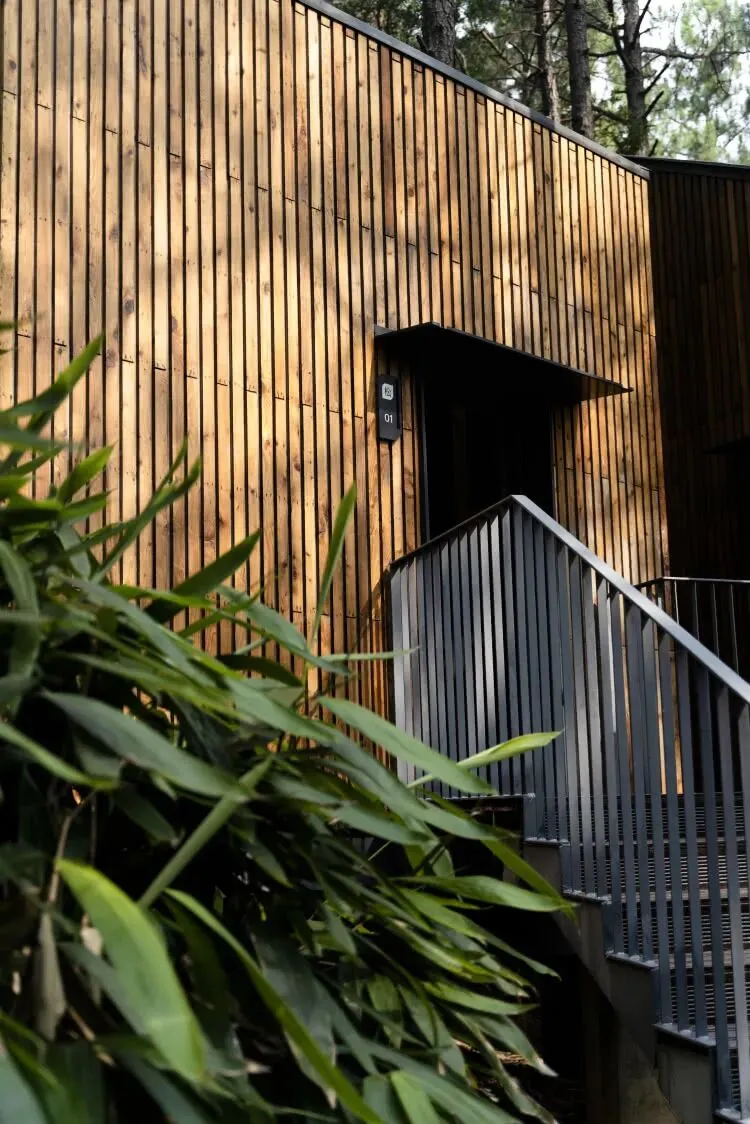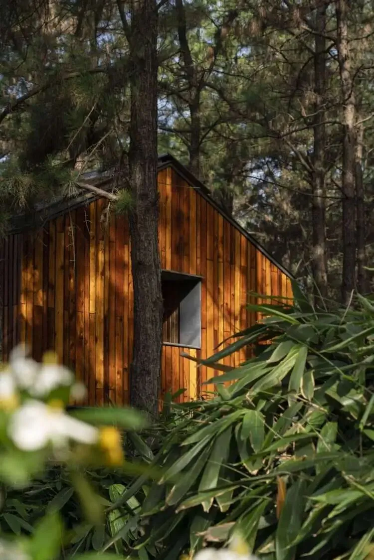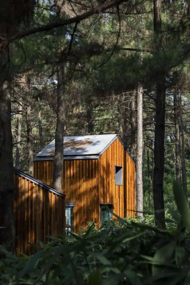 枕松在形式上因地制宜、依树而建,不仅打造出简约抽象的建筑形体以及精致多样的内部空间,并尽可能地将建筑对绿色生态环境的破坏降到低,充分彰显出一种不凌驾于环境之上的建筑谦和之美。
