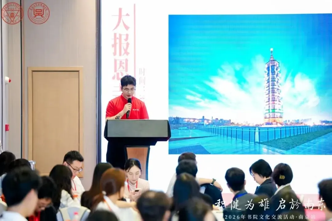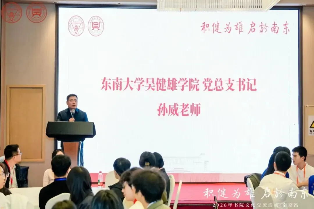 开营仪式上首先由吴健雄书院党总支书记孙威老师致辞,孙书记以真挚的话语将三所书院紧密联结在一起,并提到此次第三次南京之聚,是三校情谊的再延续,更是书院育人理念的深度交融。随后由本次活动站长茹宇浩同学为大家介绍了本次行程的大致行程安排,并邀请各小组组长依次介绍组内同学和发现南京的精彩。