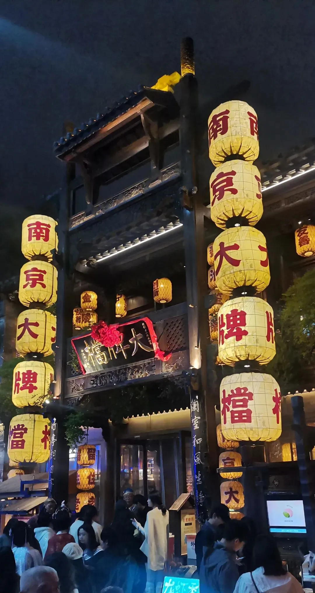 第三站:老门东 为方便第二天去中山陵和梧桐大道,更是为了满足此行中的最大一个心思:逛吃,我们特地“美团“了一家离老门东小吃街最近的一家酒店。老门东紧挨着中华门,城墙脚下人山人海,灯火通明,热闹非凡。中午和爸爸已经吃过盐水鸭和鸭血粉丝汤了,晚上直奔南京大排档、蒋有记锅贴(“秦淮八绝”之一)、小郑酥烧饼(老门东的“排队王”)、梅花糕、扬州炒饭、古法脆皮鸡……通通尝了个遍。和去年清明小长假的武汉之行一样,我和爸爸“举杯邀明月”,夜深才回到酒店,倒床就打呼了。😂