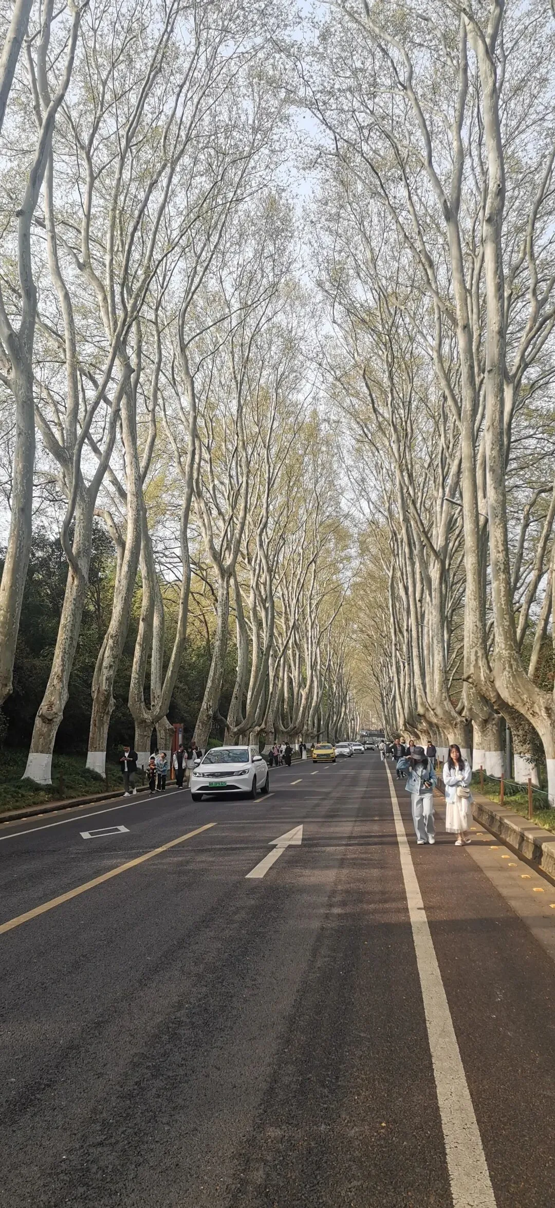 第四站:梧桐大道 这一站一直是爸爸的心心念念,他爱跑步,喜欢打卡,所以这次带我来中山陵,陵园路上的梧桐大道,是必须要来的。虽然我和爸爸八点左右到的,可那里已经很多人了,路两边的梧桐树高大整齐,确实很美,很震撼。八点半所有车辆限行之后,爸爸和我“得瑟”了不少pose,有图为证。