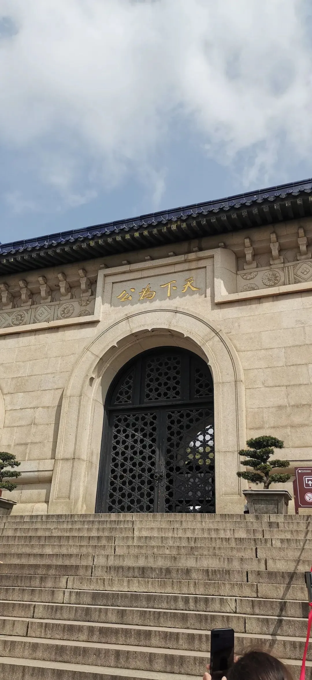 第五站:中山陵 庄严肃穆雄伟,三百九十二个台阶,我一步一步走完。天下为公,看见孙中山的雕像时,我愣住了,感觉一种神秘的压迫感在环绕着我。参观孙中山纪念馆时,我也问了爸爸很多不知所云的问题,爸爸说的,我也似懂非懂。