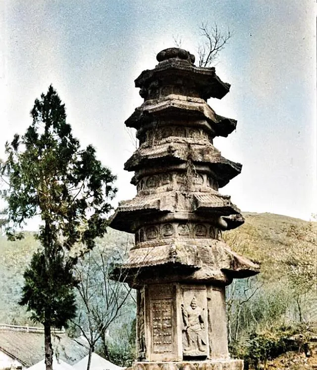 清末南京旧影:栖霞寺舍利塔前立着菩萨像,明故宫民居破旧