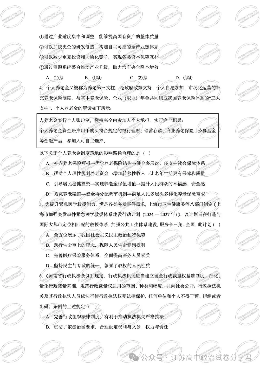 2026届江苏南京市金陵中学高三下学期一模政治试题