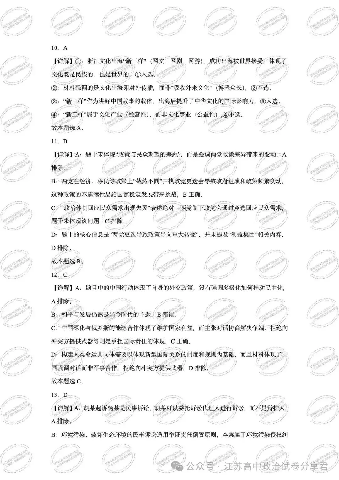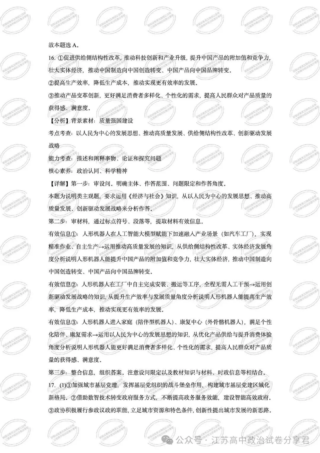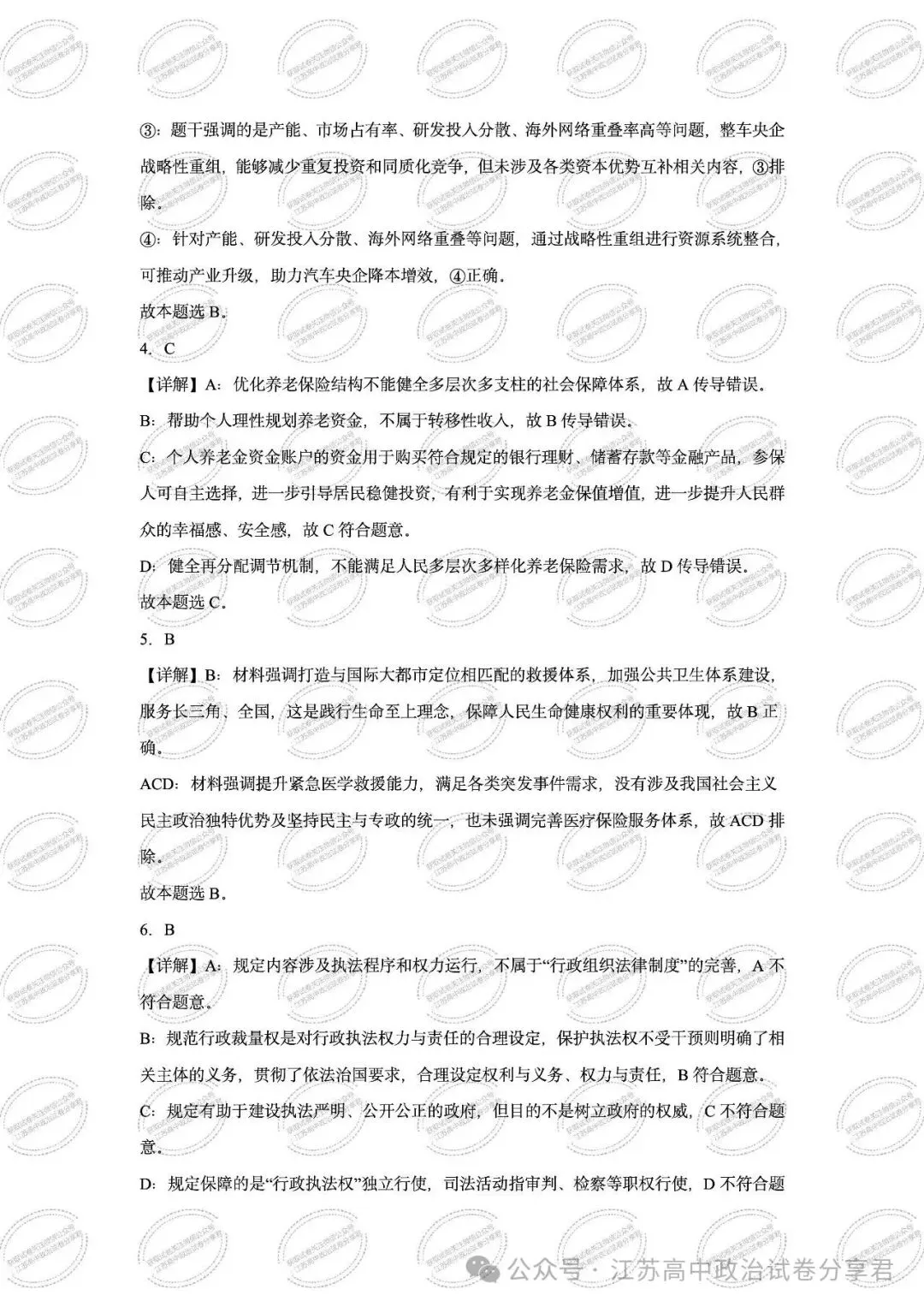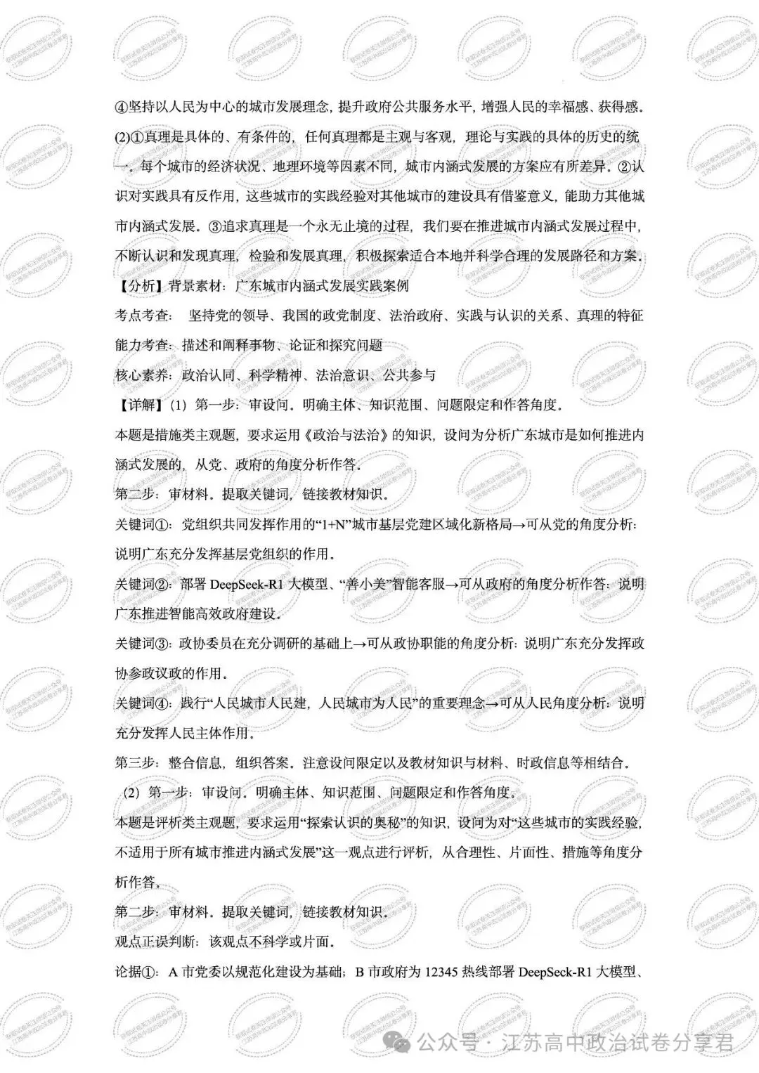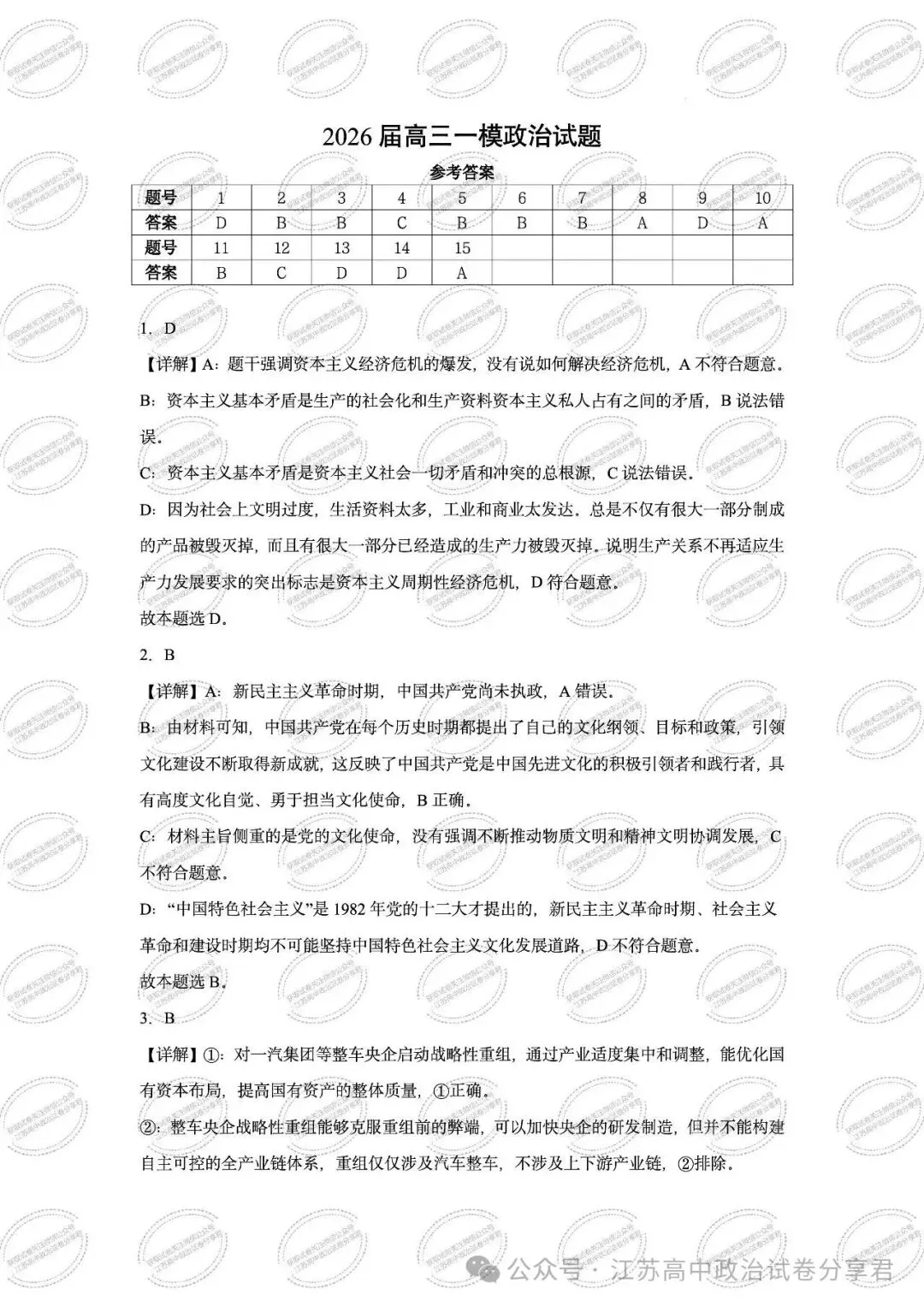 答案解析:2026届江苏南京市金陵中学高三下学期一模政治试题