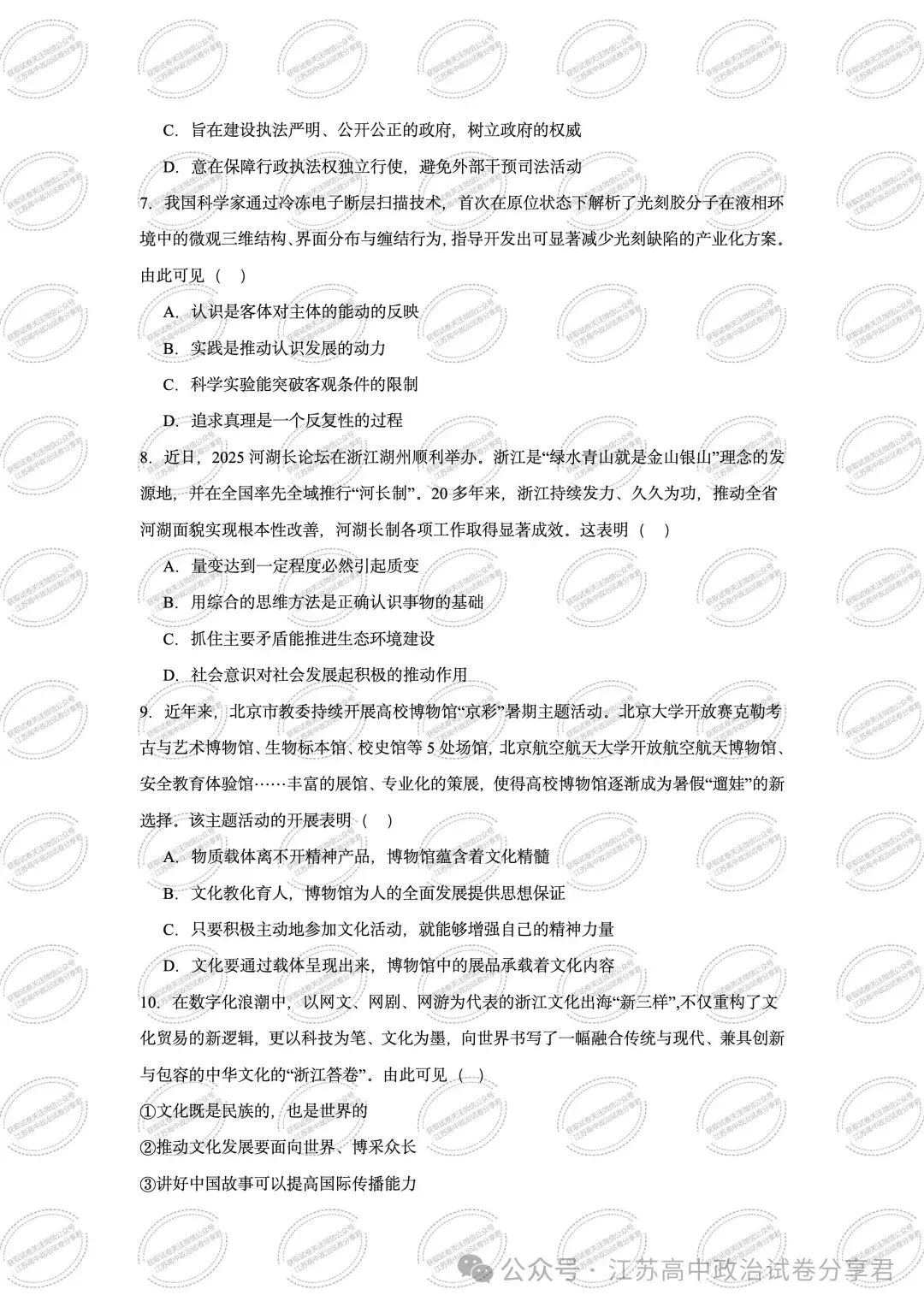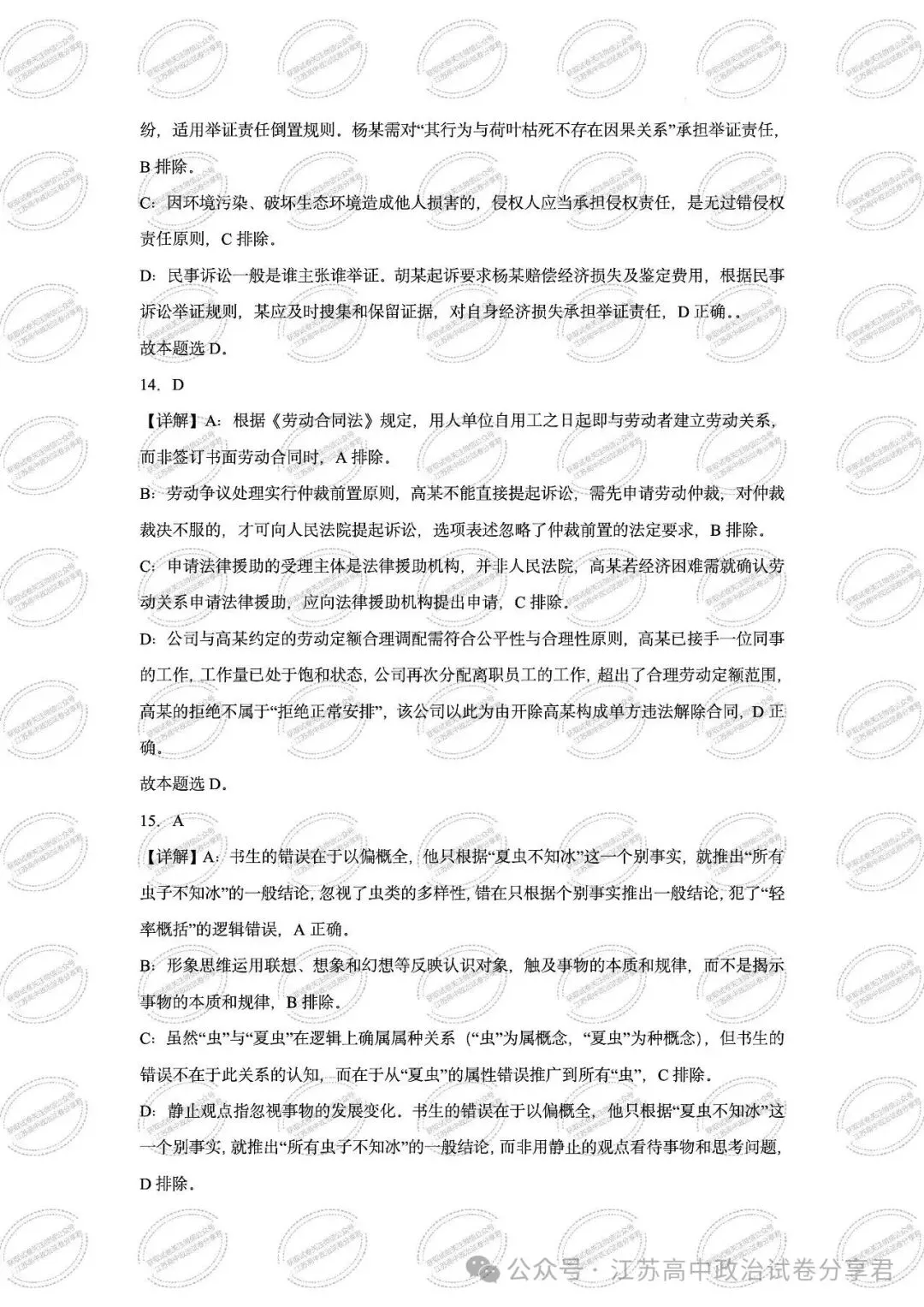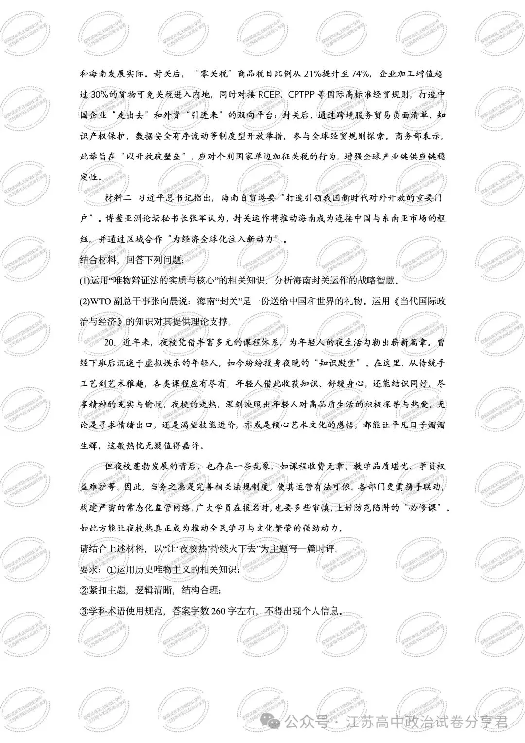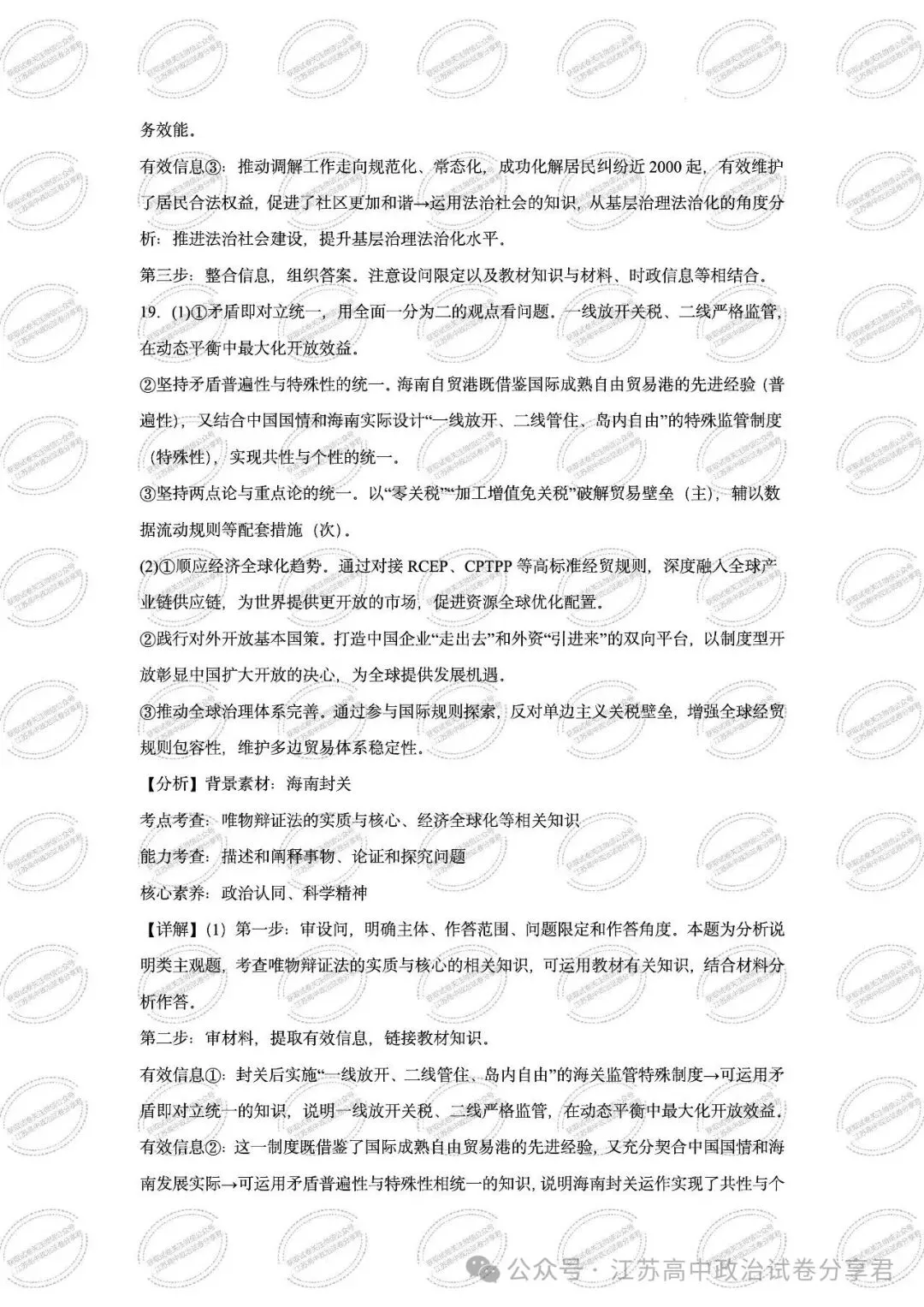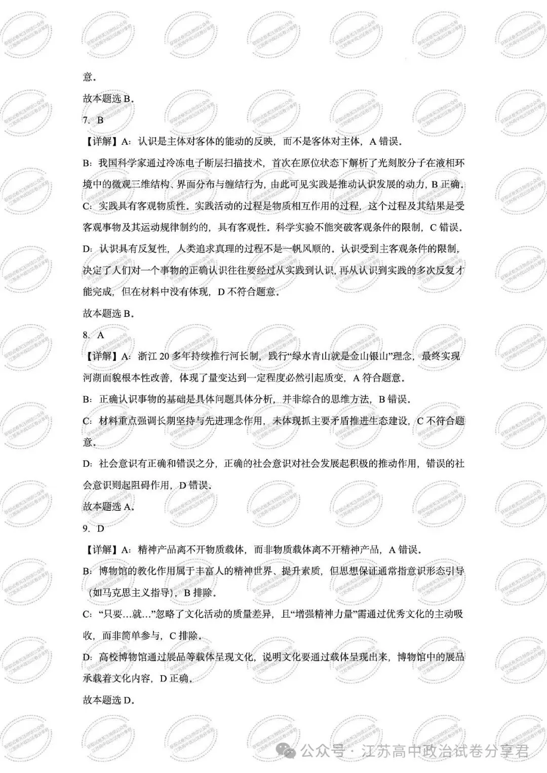 答案解析:2026届江苏南京市金陵中学高三下学期一模政治试题