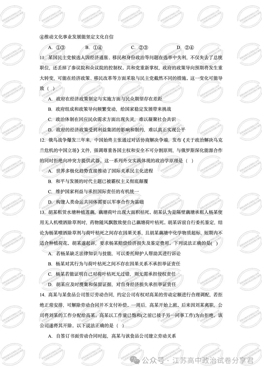 >2026届江苏南京市金陵中学高三下学期一模政治试题
