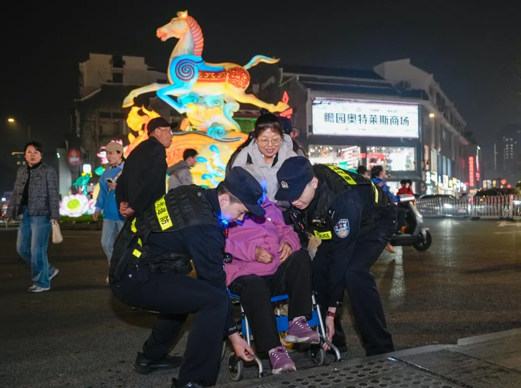4月5日下午,在老门东景区执勤的特警队员发现一名走散的5岁男童。由于孩子年幼说不清家长电话,民警一边通过电台通报走失信息,一边开启“奶爸”模式,安抚孩子情绪。不到20分钟,通过警务平台研判,民警成功联系上了正在焦急寻找孩子的母亲。同一时间,江宁区黄龙岘景区也迎来客流高峰,民警在景区巡逻时发现一名男孩不慎摔倒腿部出血,随即从急救箱中取出消毒用品,进行应急包扎。