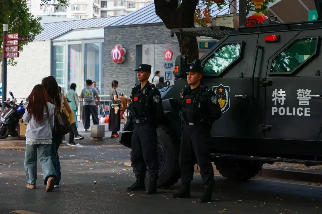 ▲特警队员在各大景区周边巡逻守护。拍摄:郭朦