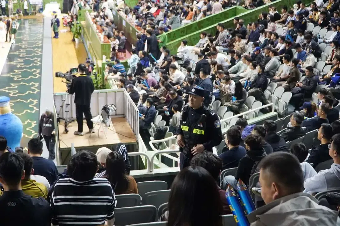 当晚,在五台山体育中心,CBA篮球联赛南京同曦队对阵江苏肯帝亚队火热开赛。鼓楼分局采用圈层式巡逻、单元式管理,积极引导观众有序出入场馆,民警坚守岗位,为赛事筑起坚实“安全防线”。