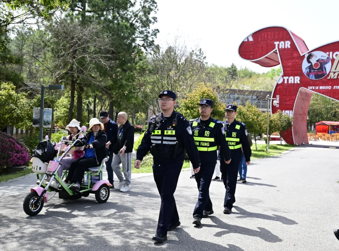 ▲民警引导外地游客赴纪念馆参观缅怀。拍摄:张梵彬假期期间,不少游客自发前往侵华日军南京大屠杀遇难同胞纪念馆参观缅怀。针对游客激增情况,建邺分局增派警力,加强周边巡逻防控,疏导客流,维护现场秩序。在钟山风景区,玄武分局民警坚持定点值守与动中巡防相结合,耐心解答游客咨询,成为景区里一道流动的“平安风景线”。而在鸡鸣寺、牛首山等热门打卡点,警方专门设立了“流动服务车”和“便民服务点”,为游客提供走失寻找、失物招领、急救药品等一站式服务,让市民游客在踏青赏春的同时,感受到触手可及的安全与温暖。