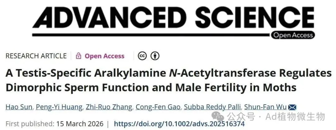 Adv Sci:南京农业大学植物保护学院吴顺凡团队一种睾丸特异性烷基胺N-乙酰转移酶调控鳞翅目昆虫双态精子功能与雄性生育力