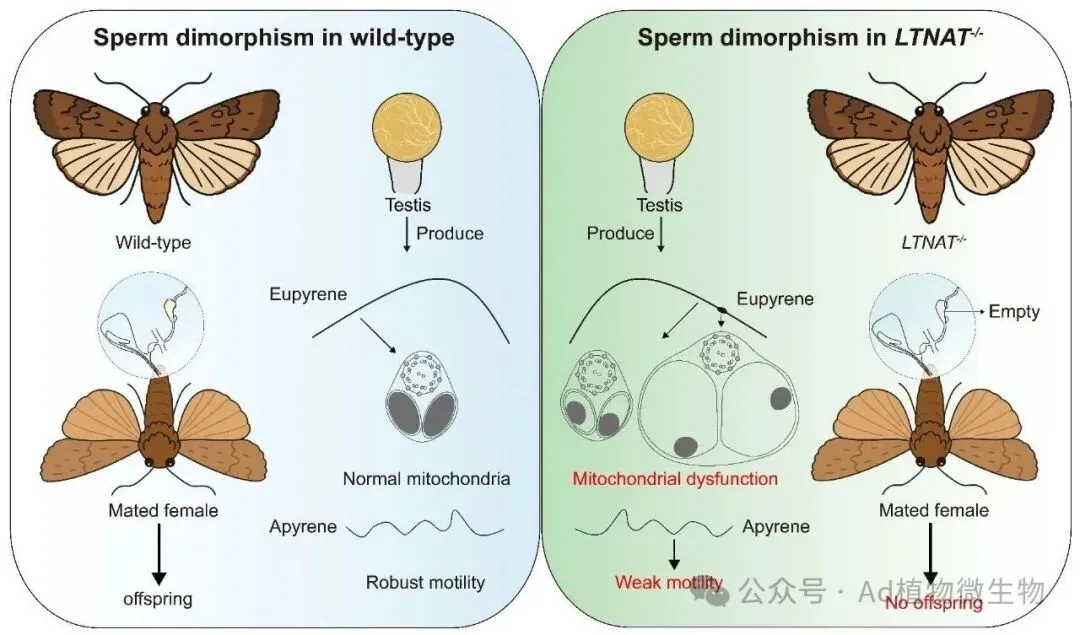 近日,南京农业大学植物保护学院吴顺凡教授团队在国际知名期刊Advanced Science上发表了一项突破性研究成果。该研究以重大农业害虫草地贪夜蛾为模型,首次揭示了一个名为LTNAT的精巢特异性基因在调控鳞翅目昆虫二态精子发育及雄性生育力中的核心机制,这不仅填补了昆虫生殖生物学领域的理论空白,更为研发基于生殖干扰的新型绿色防控技术提供了极具潜力的分子靶标。