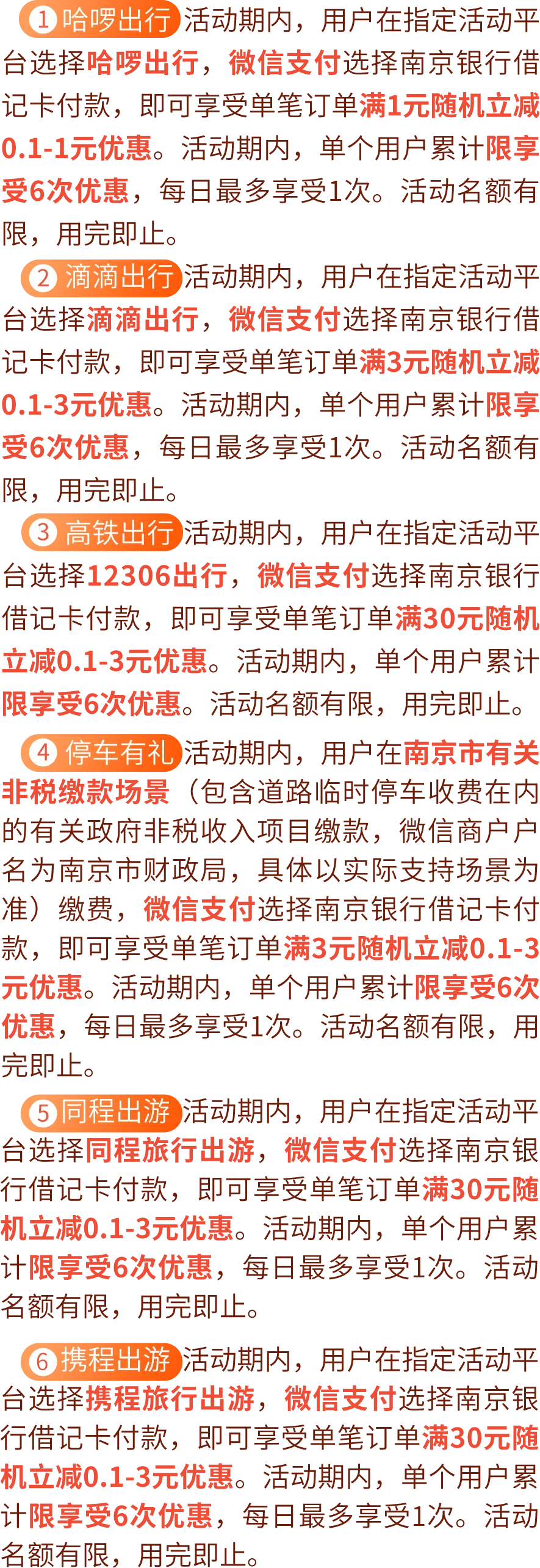 >【福利】用南京银行借记卡,打车、高铁、停车……至高立减3元