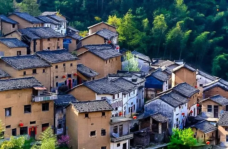 阳产土楼位于皖南山区的深渡镇。阳产,位于皖南山区的群山之中,是一个依山而筑的小山寨。这里由于地势高,交通不便,数百年来,山民就地取材,采周边青石铺路架桥,取红壤木材筑巢而居,日出而作,日入而息,渴饮山泉,饿食五谷,子孙延续。流年之中,形成了鳞次栉比、错落有致、质朴壮观的土楼群。
