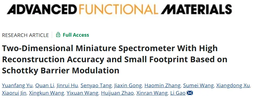 南京邮电大学高丽教授 Adv.Funct.Mater.——基于肖特基势垒调制的、具有高重建精度和小型化结构的二维微型光谱仪
