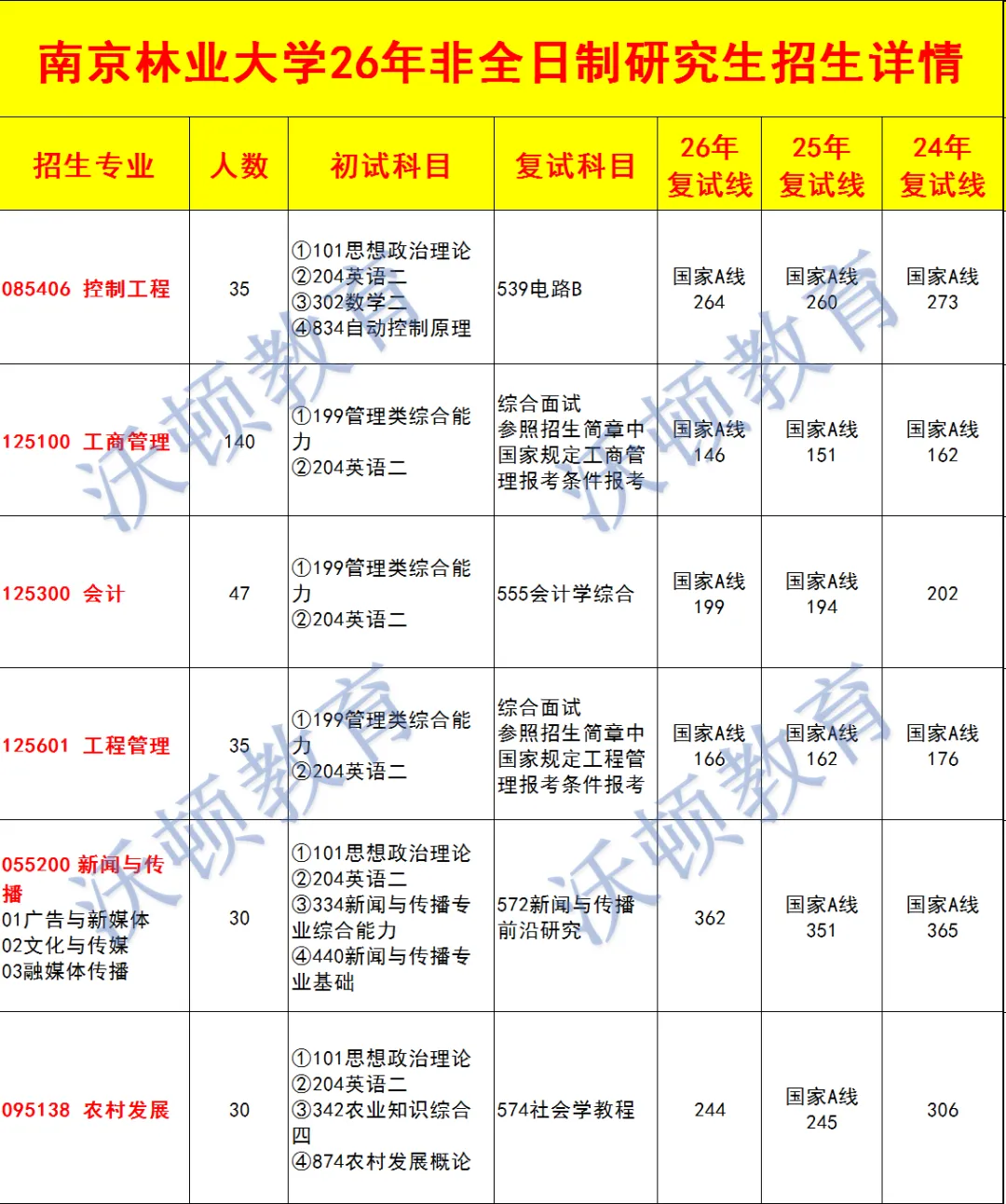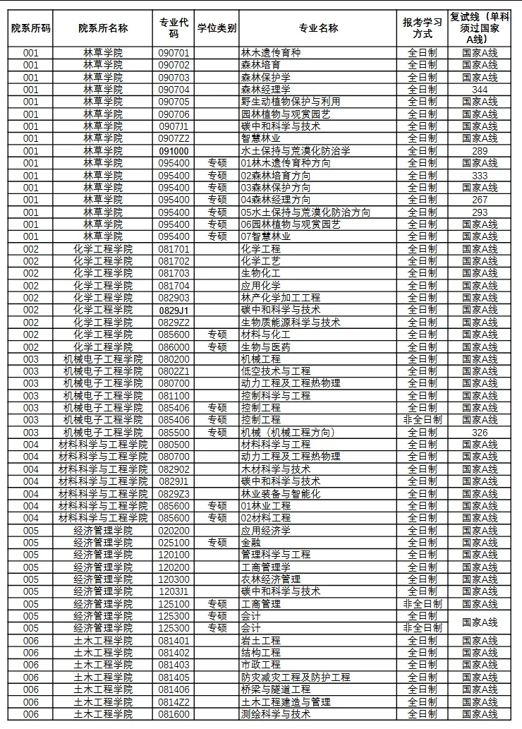 南京林业大学2026年硕士研究生复试线已经公布了!相比25考研,今年复试线整体上涨,个别专业有所下降。