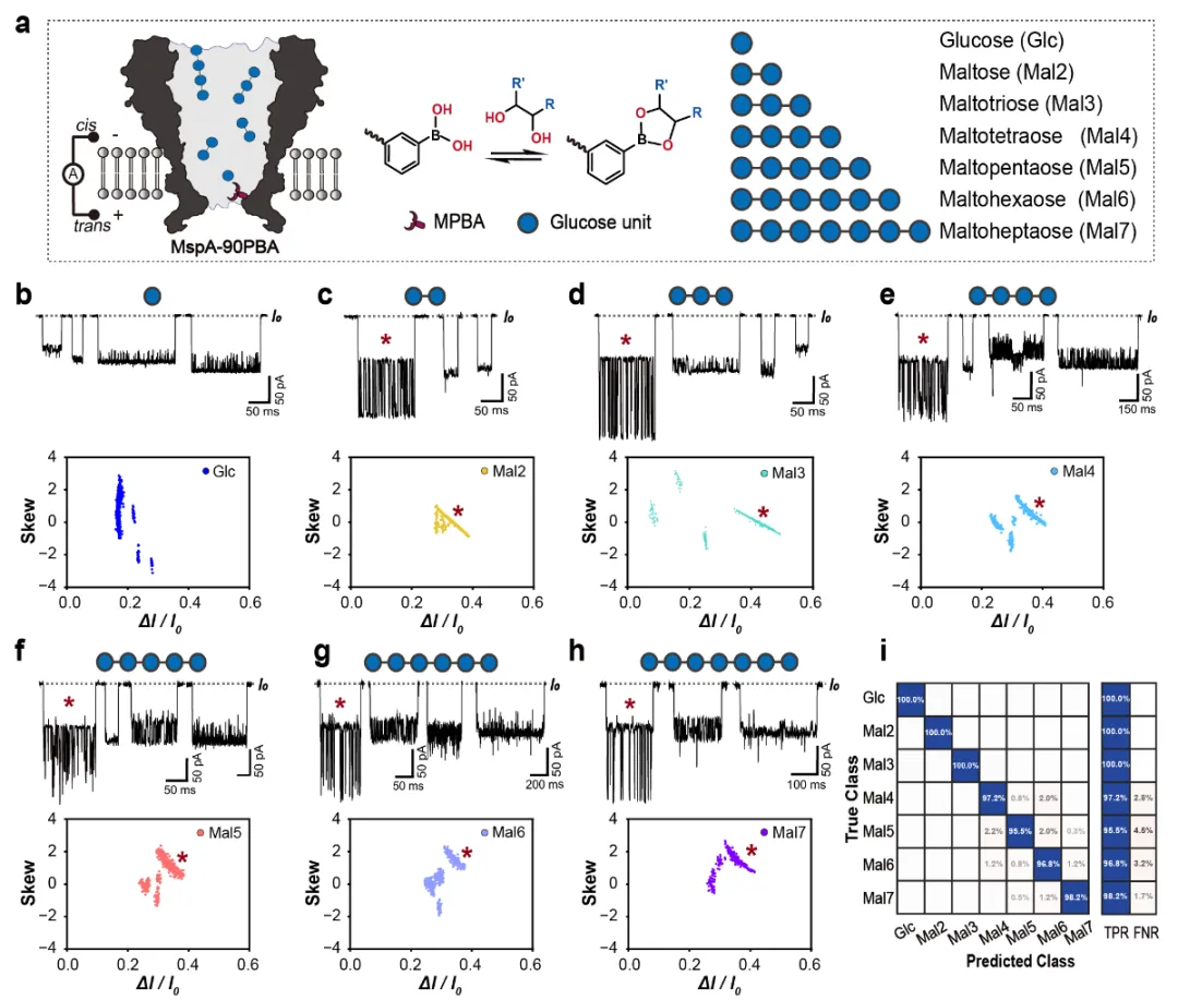 图1. 基于MspA-90PBA对葡萄糖和麦芽低聚糖的检测