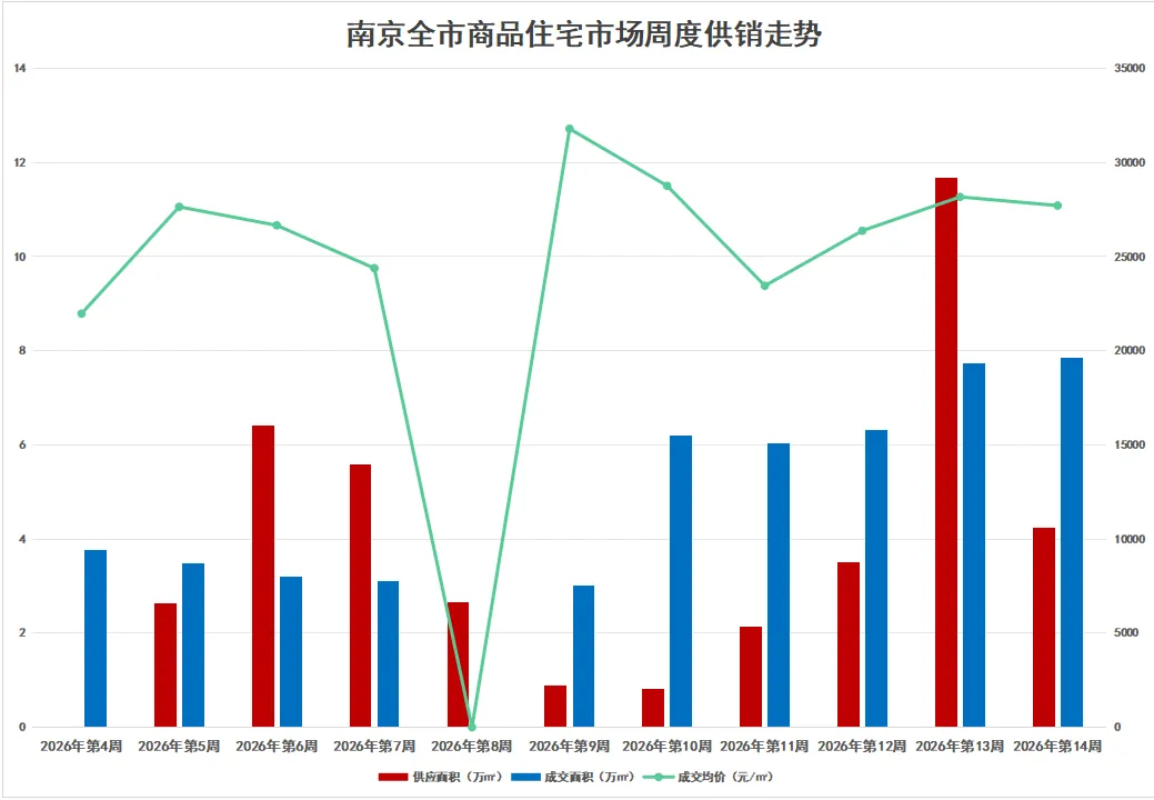 南京楼市第14周:成交量三连涨,前期政府收购老盘集中签约以及人才房票叠加新房源助力楼市持续回暖.