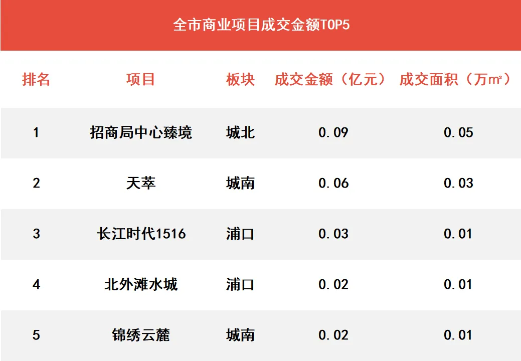 ▶招商局中心臻境项目以945.99万成为周度商业成交金额TOP1。