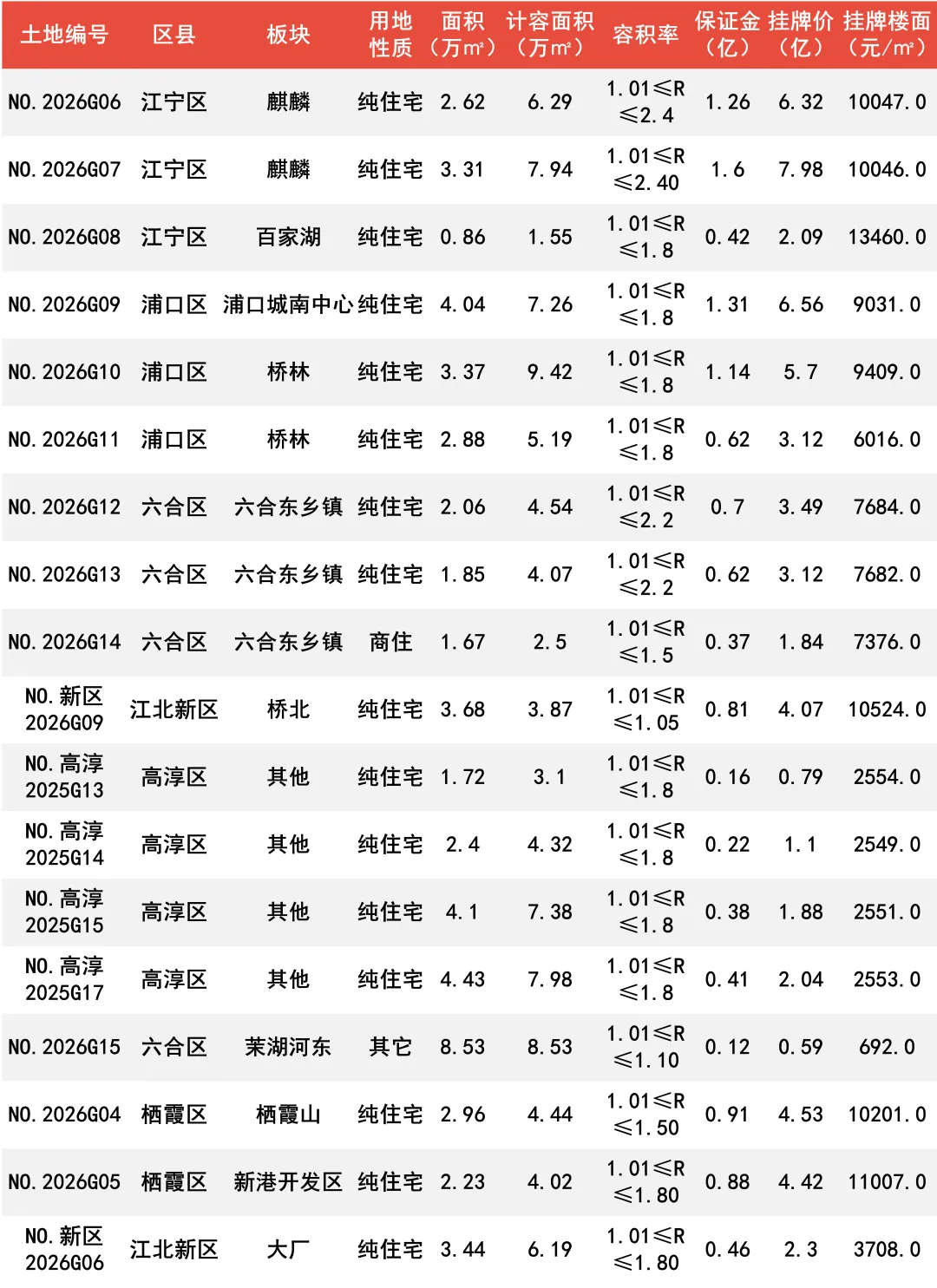 上周南京土地市场迎来了小爆发,共计推出17幅涉宅用地,总用地面积约47.62万㎡,起拍总价61.35亿元;17幅地块分别位于高淳、浦口、江宁以及栖霞等区域。