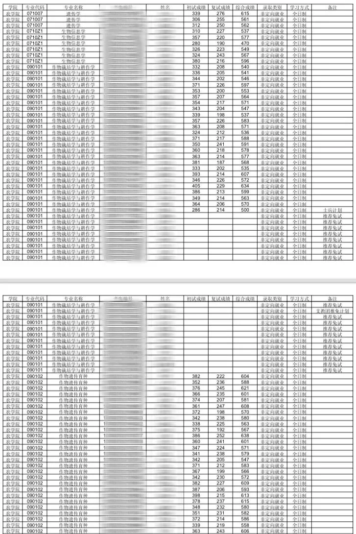 完整拟录取名单可关注【农大小星球】