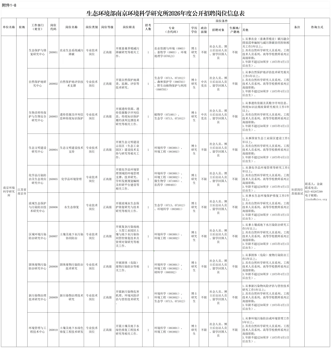 附件1:生态环境部直属企事业单位2026年度公开招聘岗位信息表.zip
