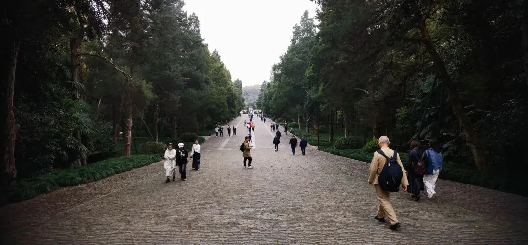 清晨的运动公园还浸在薄雾里,吃过早饭,一行人坐上十元的观光车,向着中山陵而去。拾级而上,阳光透过松柏的缝隙洒下,瞻仰孙中山先生的铜像时,肃穆感在心底缓缓漫开。站在陵顶眺望,金陵城的轮廓在晨光里若隐若现,历史的厚重与时代的鲜活在此刻交织。