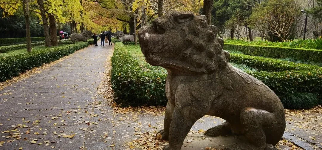 从中山陵顺着步道往下,便到了明孝陵。踏上神道,石象生在苍松翠柏间静静伫立,神态威严,仿佛还在守护着大明朝的威仪。抚摸着斑驳的石刻,听着历史的回响,那些关于王朝兴替的故事,顺着砖石的纹路慢慢铺展。