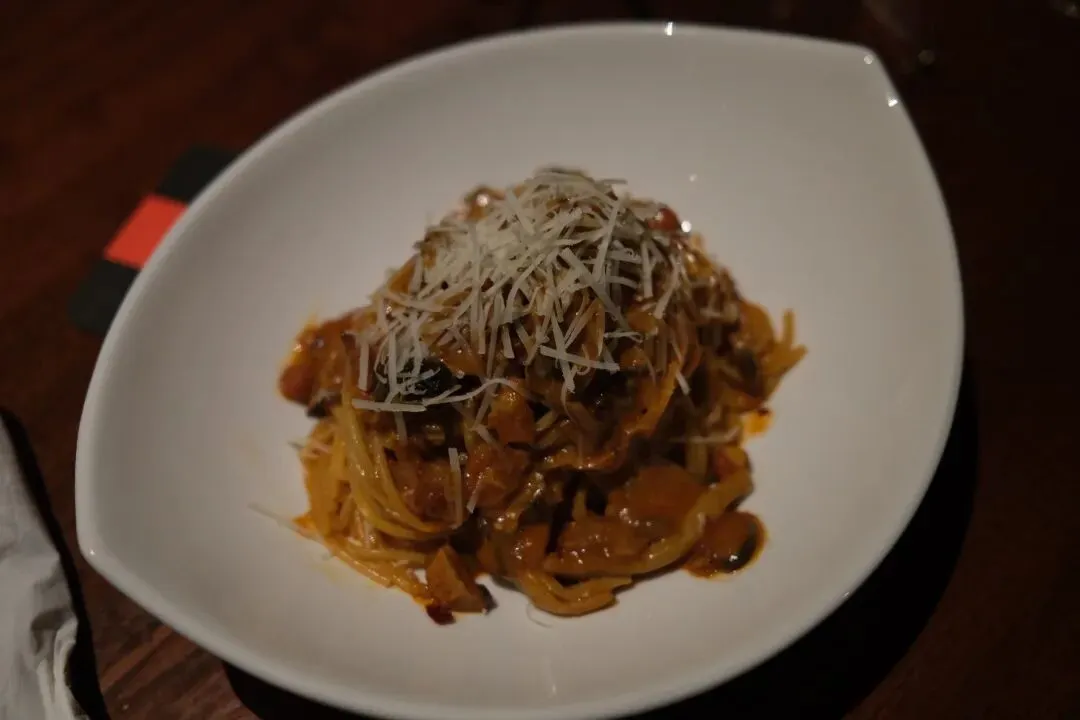 笔者的经典收尾,黑方作为基酒的血腥玛丽,浓郁又清爽的醒酒佳品。另外座bar的意面相当好吃,还可以选择图中的老干妈版本。