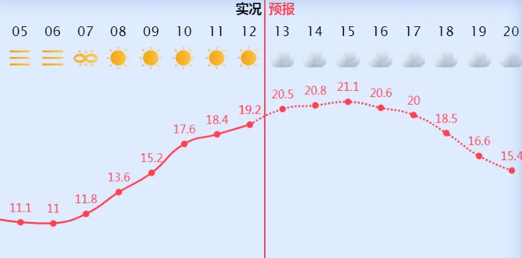 今天最高气温: 21℃到22℃