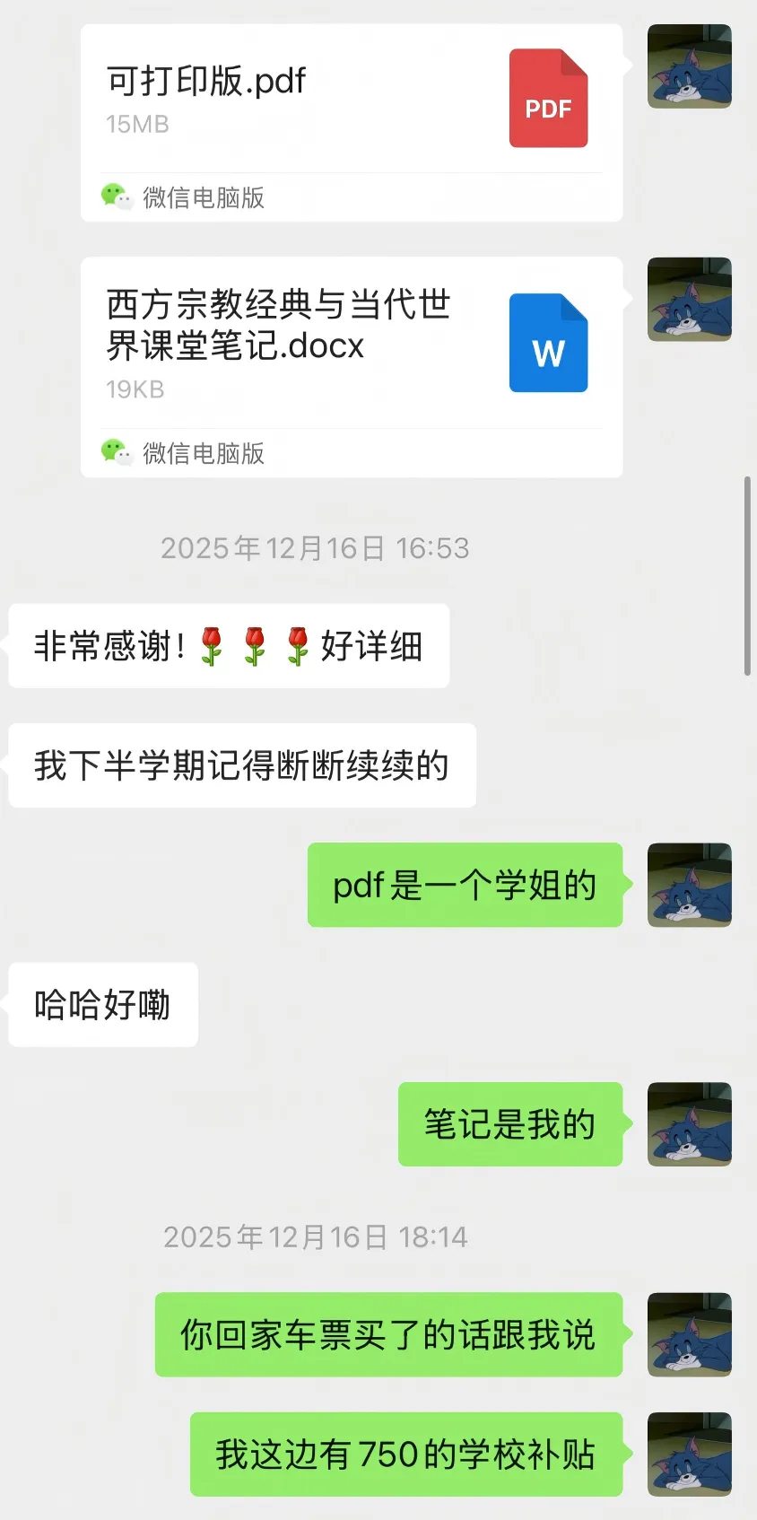哲思启明,星火相承。高年级与低年级学生结对帮扶,以专业之智解学业之惑,以朋辈之暖治愈成长的阵痛。哲学学院“星光伙伴”形成了“学业+生活+发展”的全方位帮扶模式。卜新洋对接李同学和刘同学两位学妹,针对期末压力主动分享课堂笔记与复习资料,在得知刘同学长期失眠后,他先是建议运动调节,见效果不佳便督促她就医,并用帮扶补贴为其报销300元医药费。唐宇航则聚焦拉巴同学的学业与求职两大难题,每周固定开展文科数学辅导,讲解、练习、错题分析环环相扣;他也主动提供内推岗位,搭建实习信息平台,手把手带她推开求职之门。在持续的关心和交流中,被帮扶同学在学业表现和个人成长上取得显著进步。三位同学的专业认同感显著增强,从被动接受帮扶到主动规划未来,完成了成长路上的重要跨越。