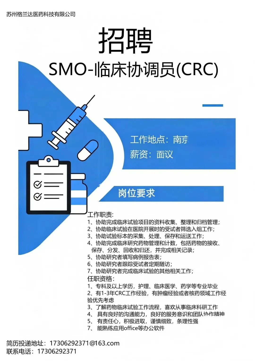 CRC招聘信息免费发布