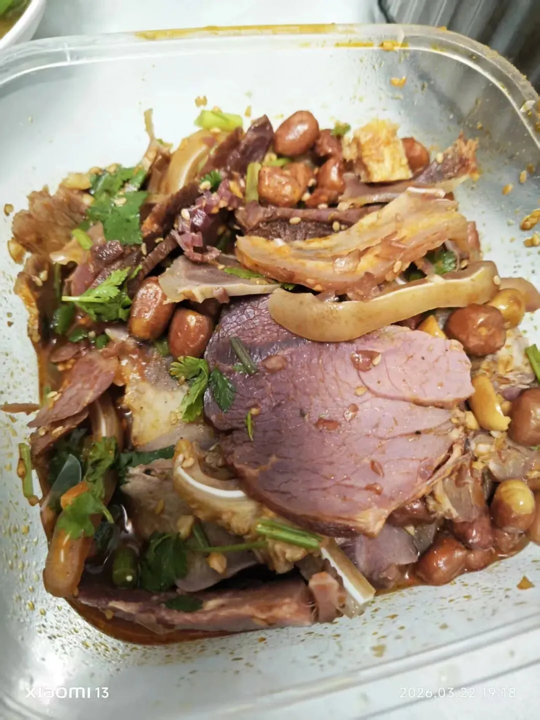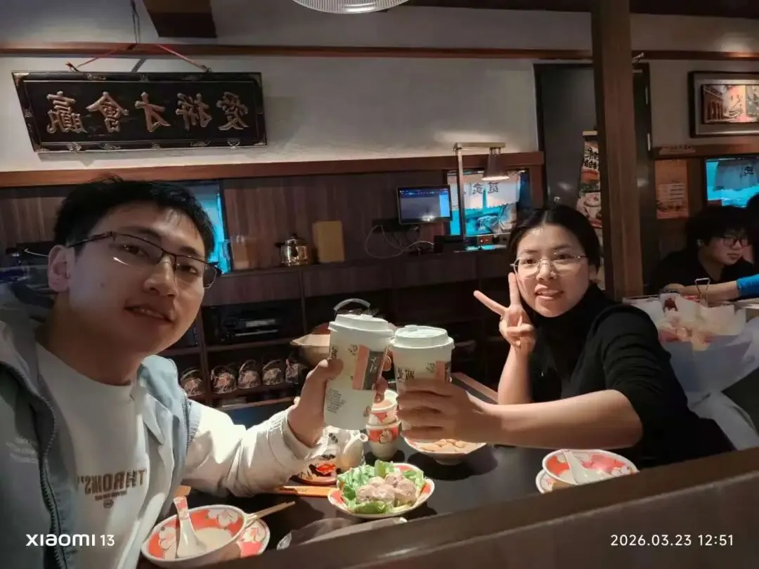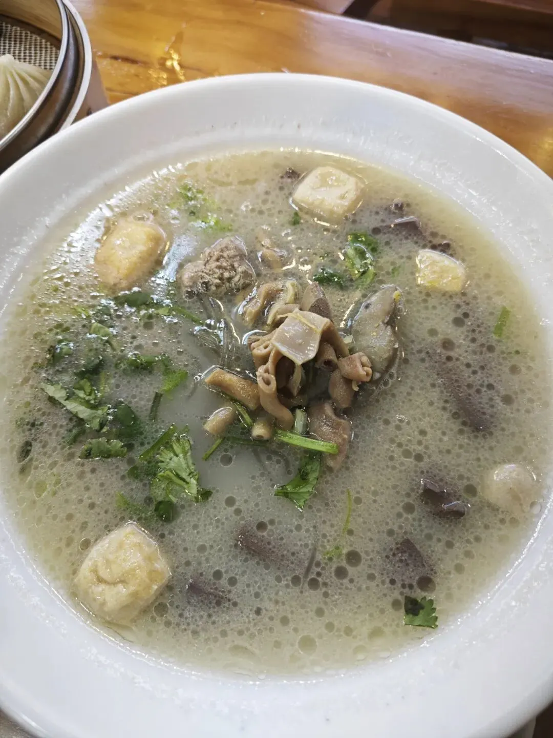 鸭血粉丝、鸡鸣汤包作为早餐果然名不虚传,鸡鸣汤包一笼6个,皮薄汁多,一口咬下面皮带来的碳水熟悉感,随后涌出的鸡汤的鲜和油脂的香味填满口腔,盐味正好,再咬中一口肉馅,口感丰富,味道鲜美。当然,我最喜欢的是一口直接吃下一整个,整个汤包融化在口中,略烫的汤汁充盈着口腔,别是一番滋味。敏敏的鸭血粉丝也正符合她的口味,只是缺少了贵州人常伴的辣椒。她说,别一口吃整个汤包,但是当我把一整个喂给她的时候,也忍不住夸赞我这一口拿下的吃法,我们吃的不亦乐乎。