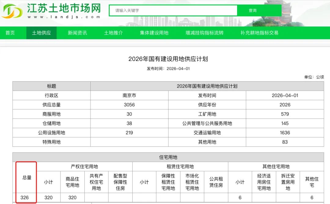 于楼市而言,土地供应量至关重要。供求关系将直接影响未来房价。就在这两天,2026南京国有建设用地供应计划公布,其中住宅用地总量326公顷(纯宅地320公顷)。