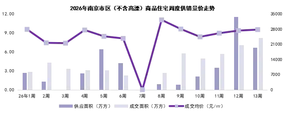 要知道,2021年-2023年,南京住宅用地供应都超800公顷,而今年326公顷的供应量,已经是大幅缩减。供应量也决定着未来房价,这几年南京克制着住宅土地供应,且容积率也大幅降低,对于新房市场是极大利好。从这几年的土地成交数据,也能看出南京住宅土地供应量在大幅缩减。且这几年不少拿出来的地块都是核心区域的低密宝地,这也更让人期待今年这320公顷土地。据克而瑞数据,新房市场,受益于新政持续落地,2026年第13周(3.30-4.05)南京新房市场呈现量价同步上行、产品结构优化态势,改善型房源成为市场成交主力。