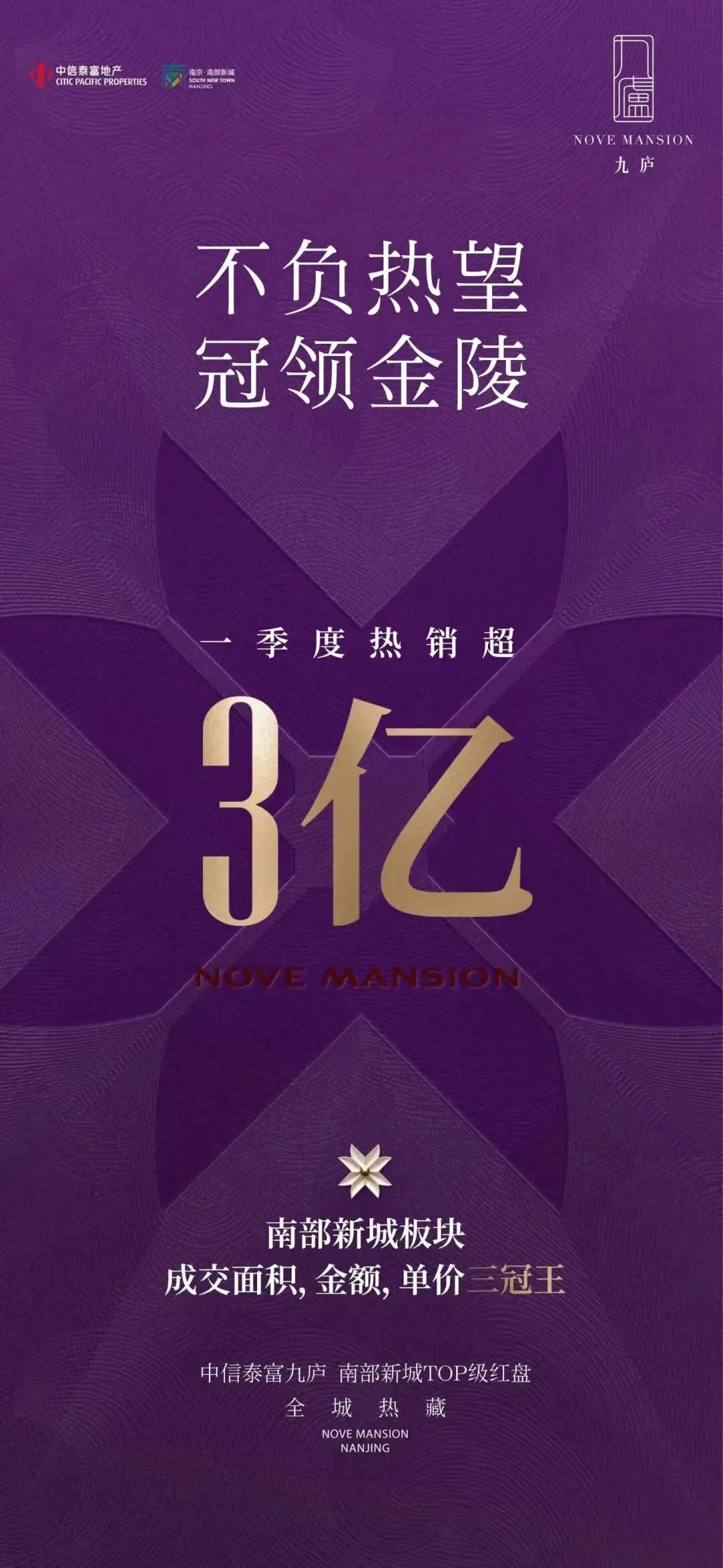 江宁竹山路的金茂樾满云川,小长假热卖26套,3天销售额破亿江北龙湖天曜城,小长假3天卖了20多套,雨山路超级大城很是火爆河西顶级豪宅凤起潮鸣,示范区公开后成交量也很惊人,4月6日单日成交额超1亿元联发两盘3月火爆成交,雨花新澍是南京新房成交套数TOP1,联发云启是南京新房成交面积TOP1南部新城中信泰富九庐,今年一季度热销超3亿元,拿下南部新城板块成交面积、金额、单价三冠王