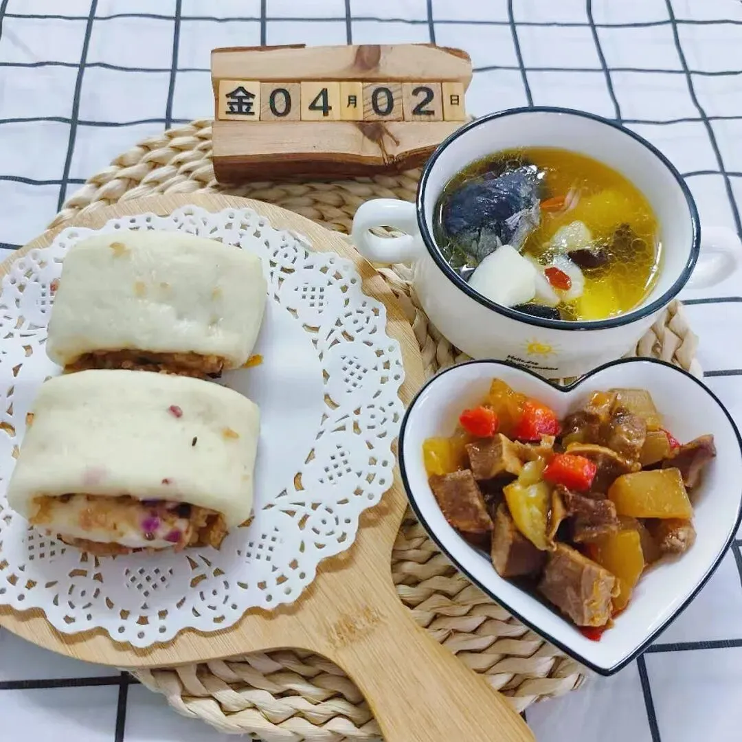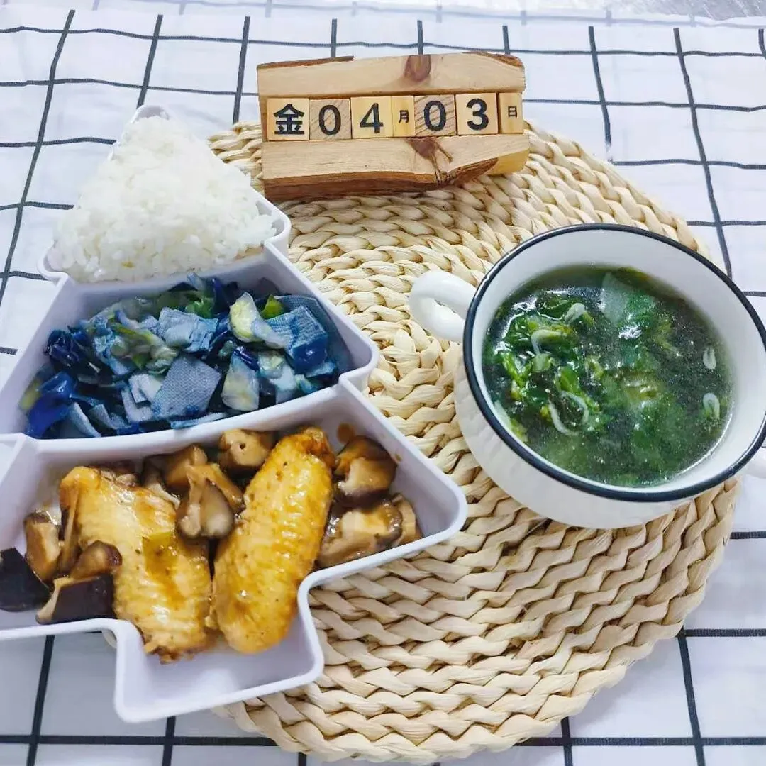 双色甘蓝炒豆皮、奶白菜紫菜虾皮汤