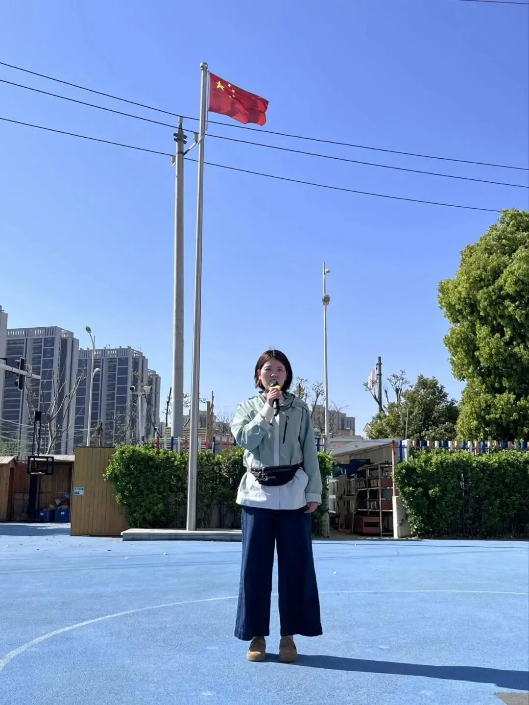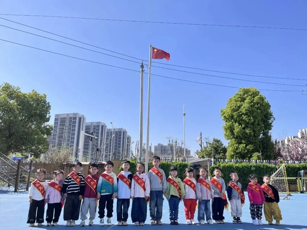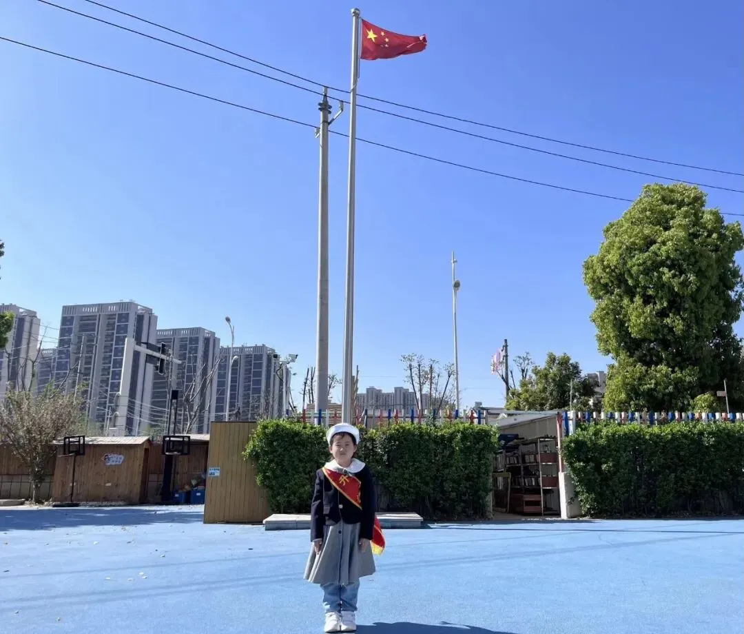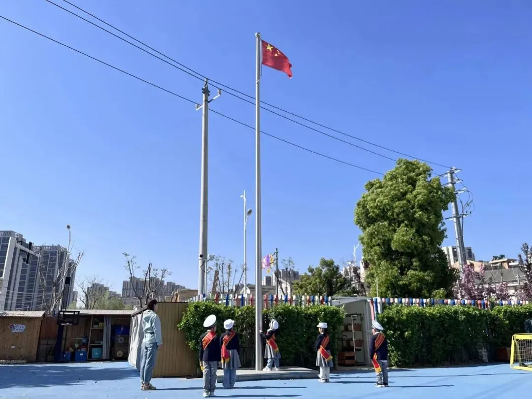 今天,我们站在高高的五星红旗下,心里特别开心、特别自豪。因为我们都是天环路幼儿园的小朋友!