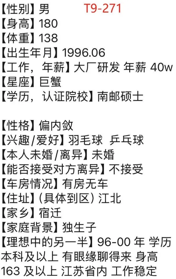 南京月老丨96年,男,身高180,南京邮电大学硕士,大厂研发,年薪40W左右