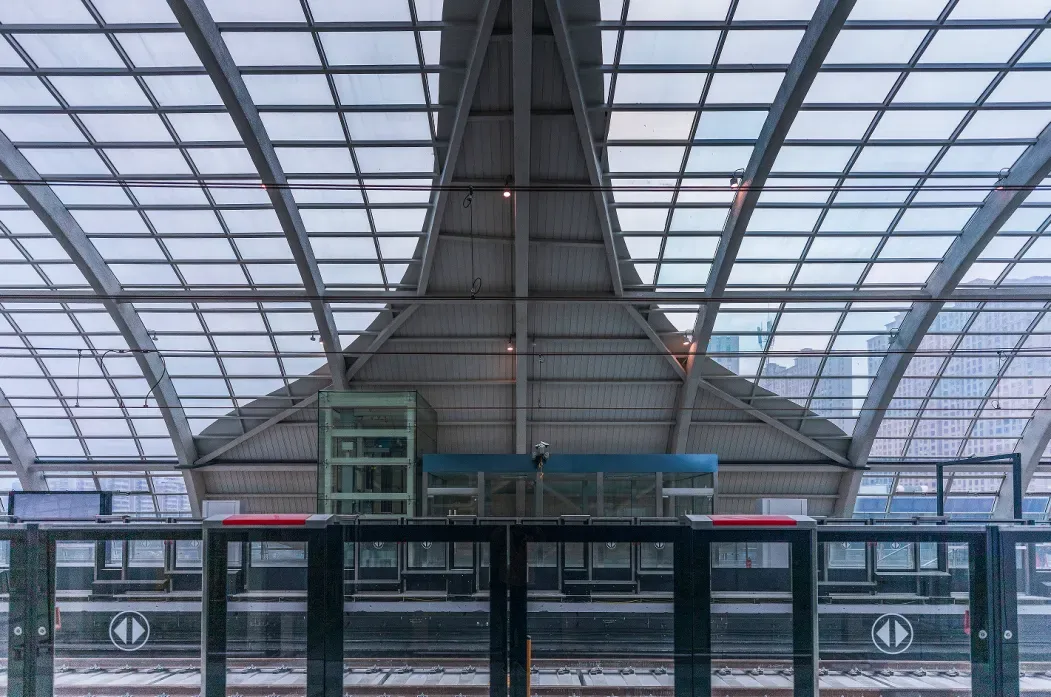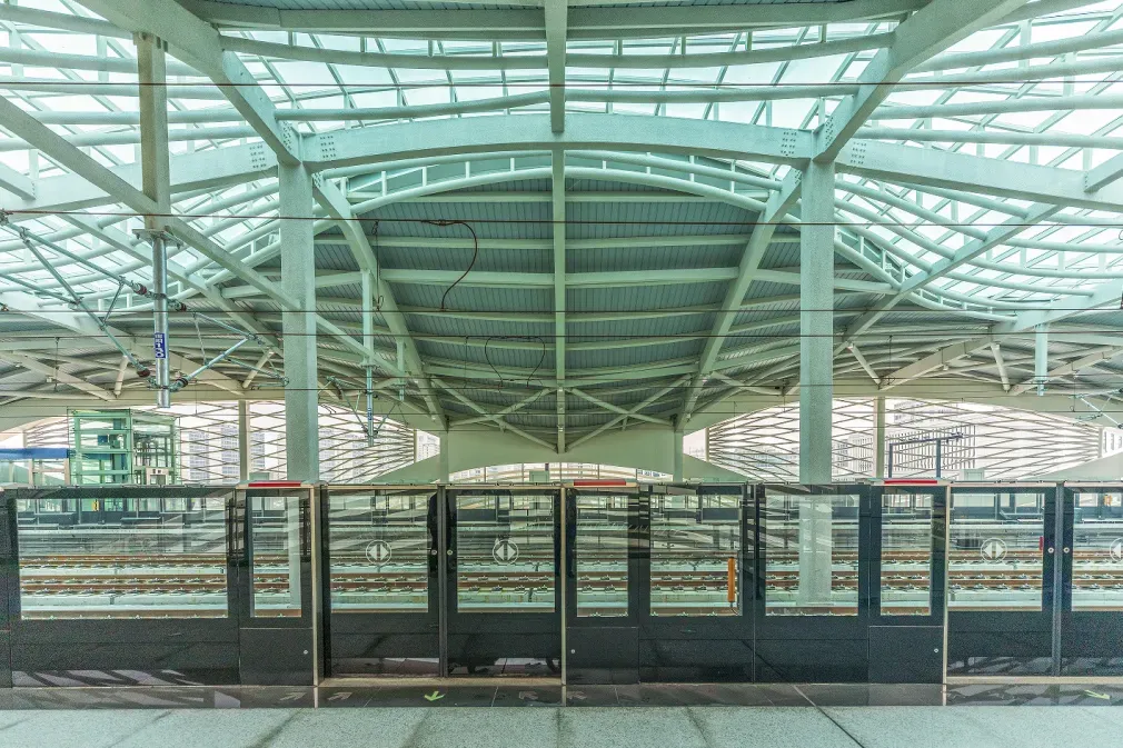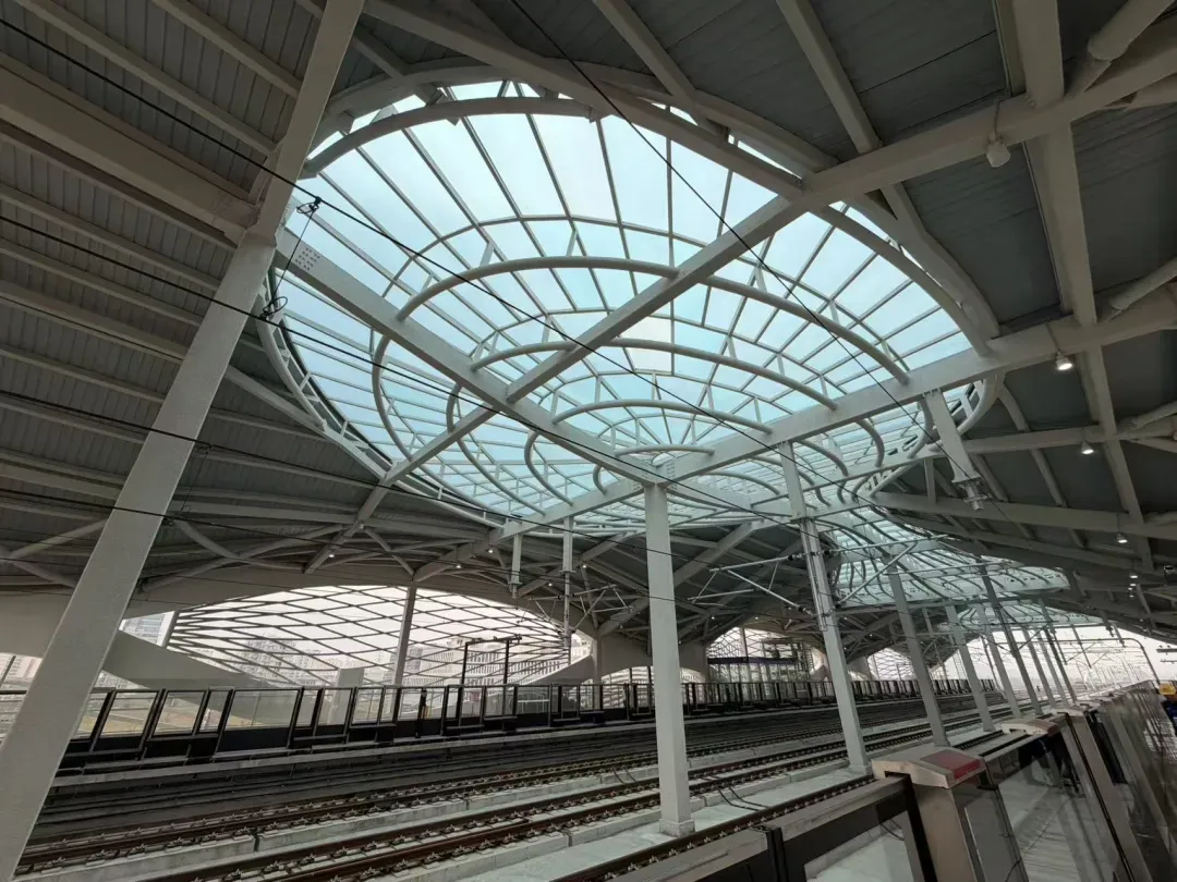 阳湖站位于九华东路与江东大道交叉口南侧,为路中高架三层侧式越行站,车站总建筑面积10900.02平方米,是宁马城际铁路全线最大车站。