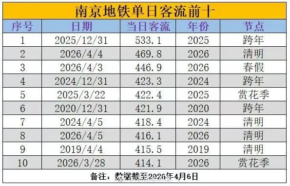 就拿刚刚过去的春节+清明假期来说,南京地铁多日客流闯进历史前十纪录,其中4月3日和4日,分别达到469.8万人次和446.9万人次,位列南京单日客流榜单第二和第三。